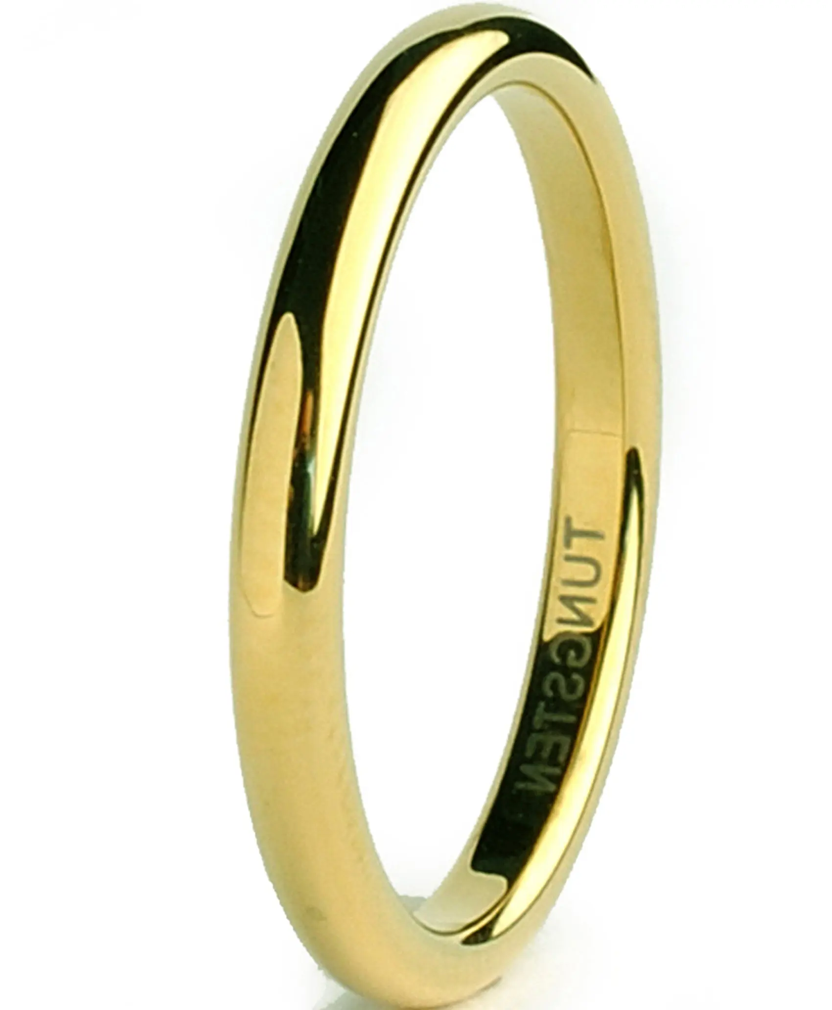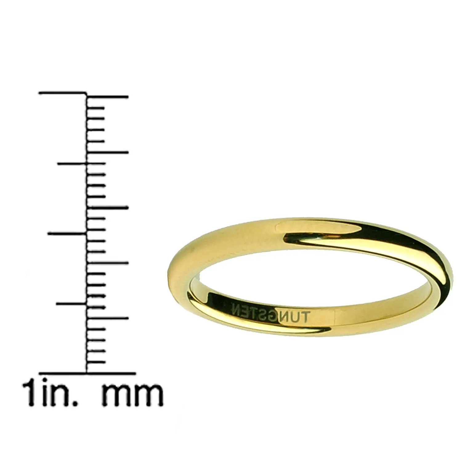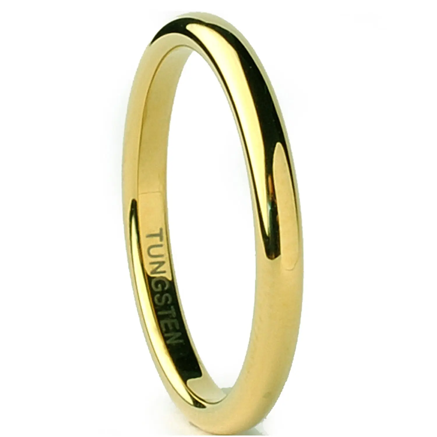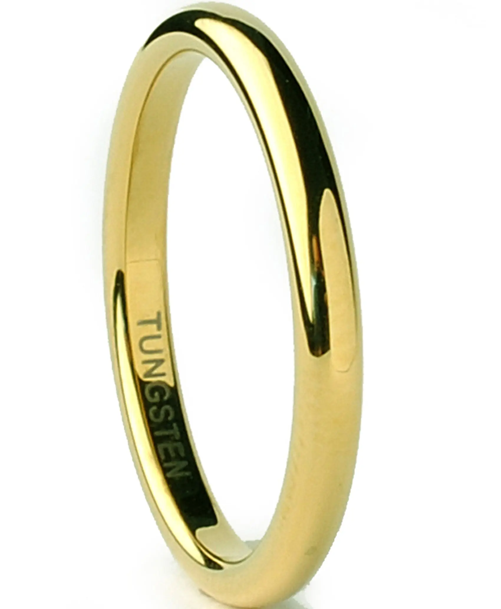 This beautiful goldtone Tungsten Carbide ring is 2MM in width and all high polish. If you are looking for a ring that is scratch-resistant and forever keep its shine, then our Tungsten Carbide rings are for you. All of our Tungsten rings are hypoallergenic. Due to the hardness of the metal, these rings can be laser engraved, but not hand engraved. Comes with a complimentary ring box.