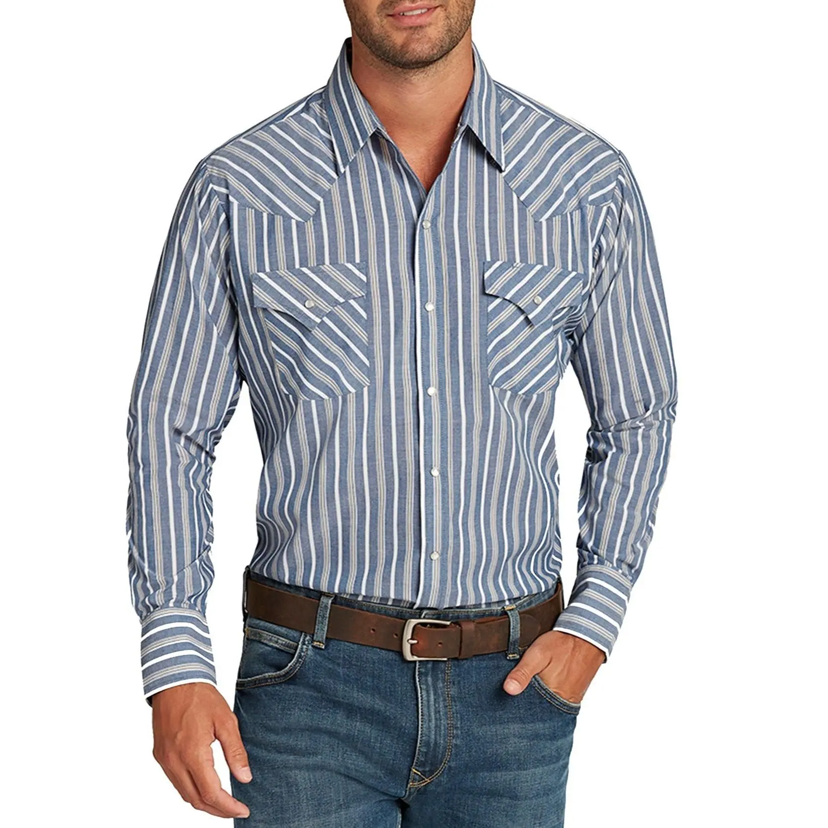 Nice shirt. Fit is great. Classic pearl snap western shirt. Fast shipping. Would definitely buy from seller again. Thank you.