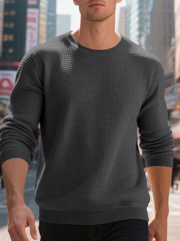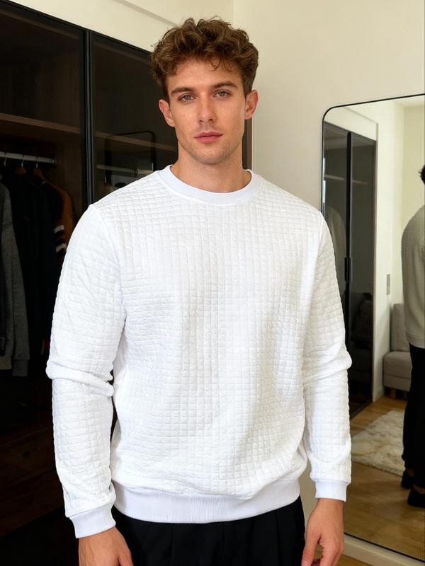 Men's White Waffle Knit Sweater, Crew Neck & Long Sleeve Design, Soft Breathable Cotton Blend for Spring Fall Casual, Office & Daily Wear – Slim Fit, Ribbed Cuffs/Hem, Thermal Texture, Classic, Crewneck
