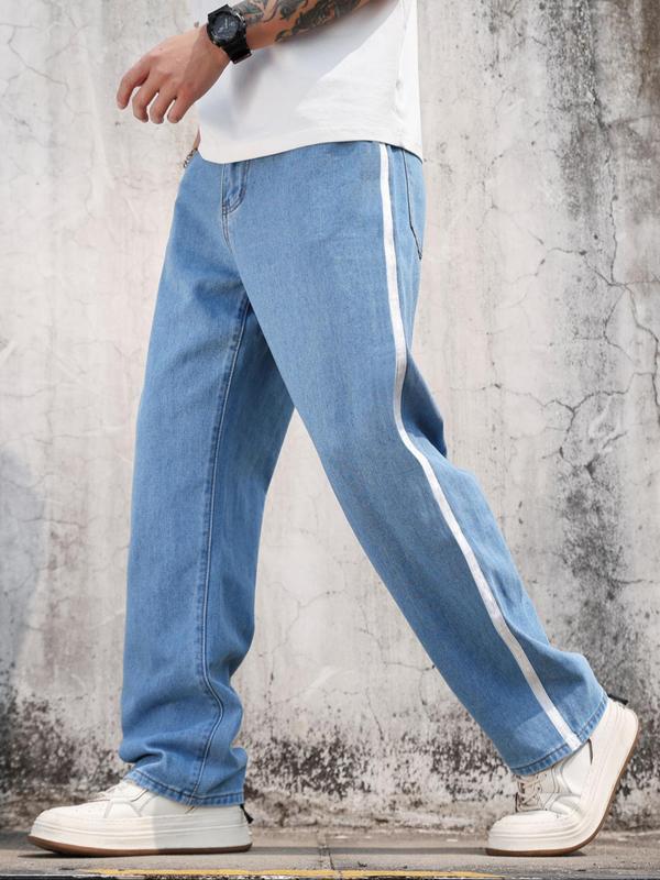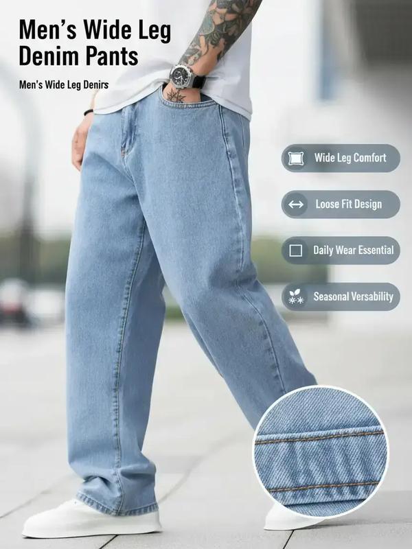 5. Men's Solid Color Wide Leg Jeans, Loose Casual Comfy Denim Trousers for Daily Wear, Fashion Men's Bottoms for All Seasons
