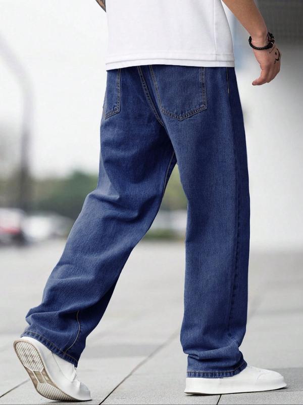 Men's Solid Color Wide Leg Jeans, Loose Casual Comfy Denim Trousers for Daily Wear, Fashion Men's Bottoms for All Seasons