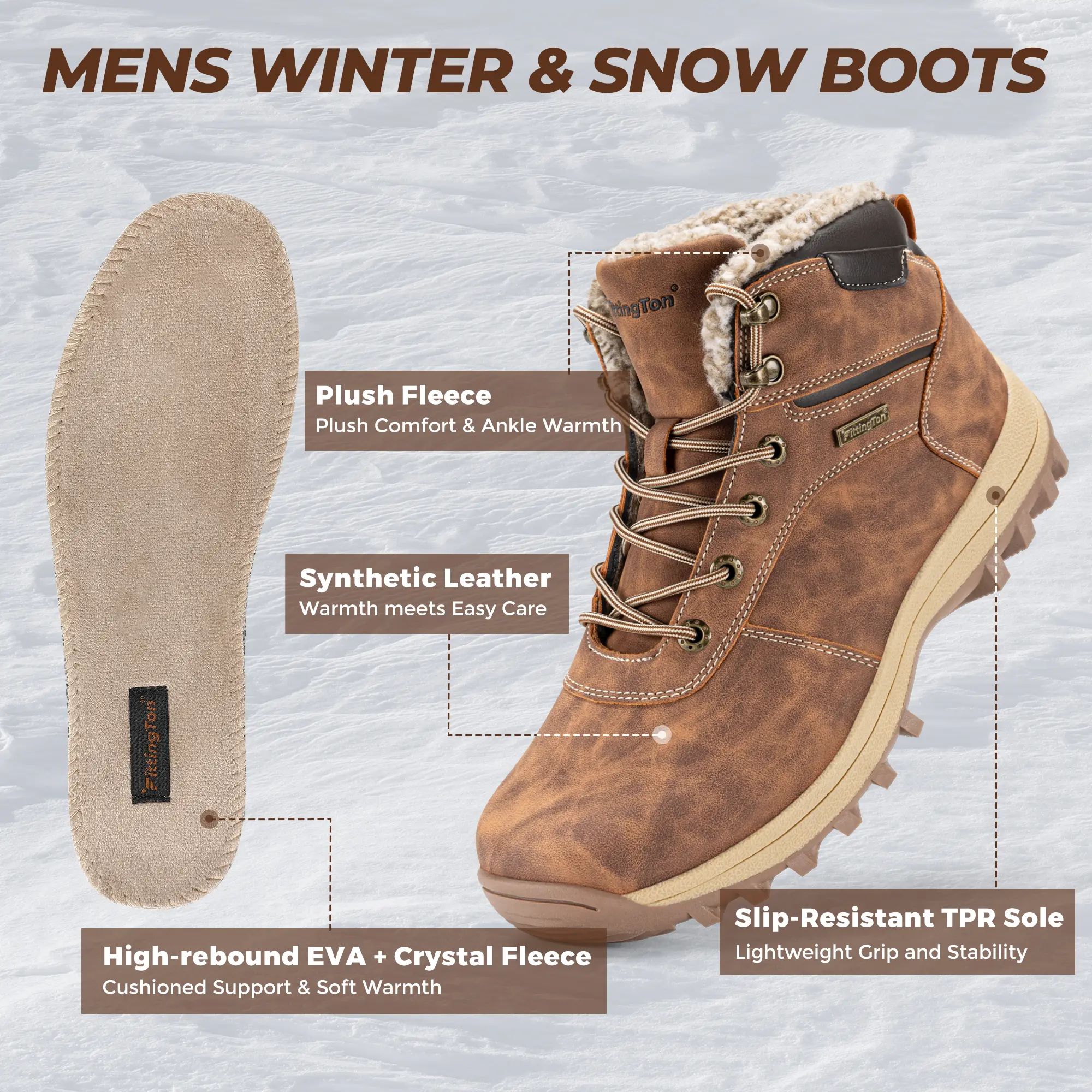 ·Cozy Fleece Warmth: Plush fleece lining keeps your feet warm.
