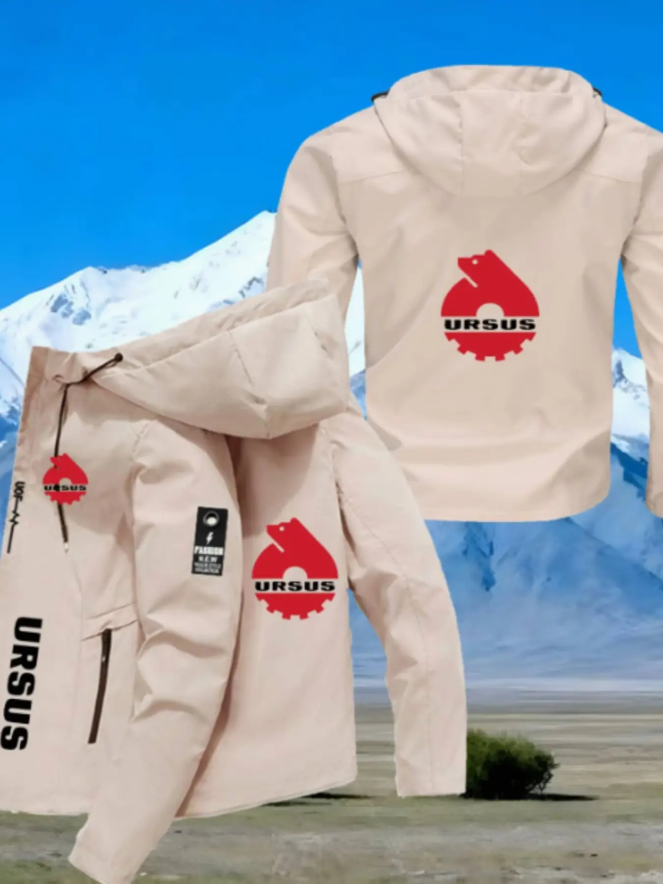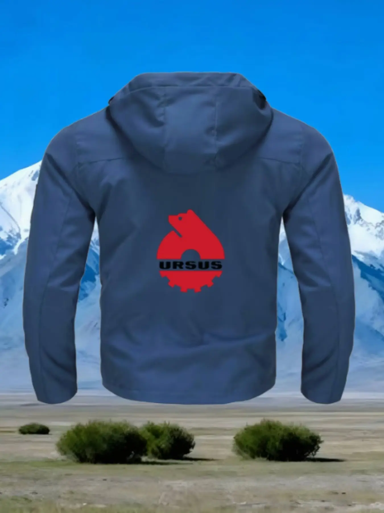 Men's Fashion Ursus Logo Lightweight Outdoor Windproof Jacket, Bear Print, Long Sleeve, Fitted, All Seasons, Durable Polyester
