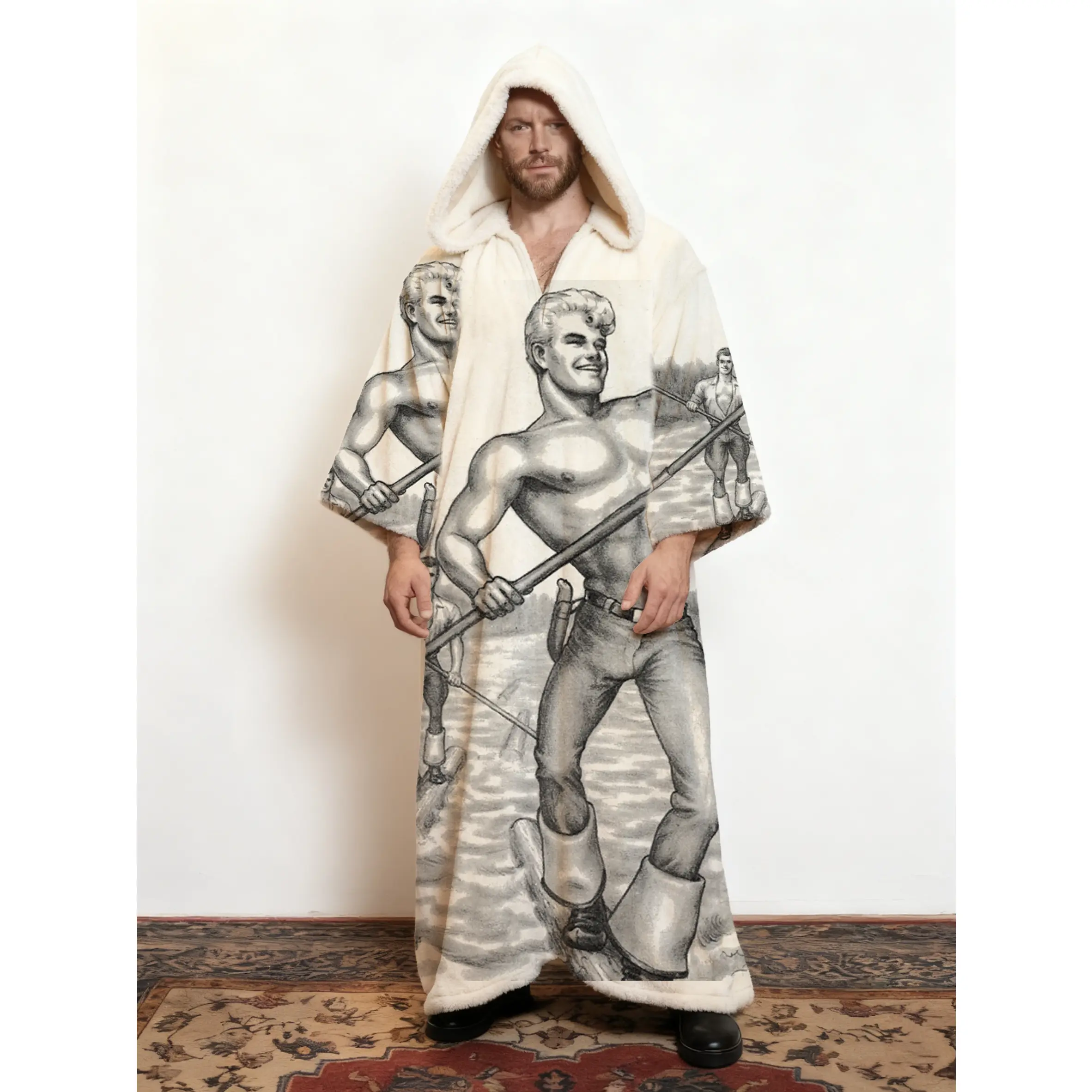 Men's Winter Casual Artist Hooded Kaftan Art Print Robe SpringStatements