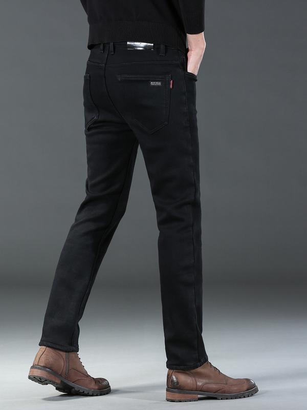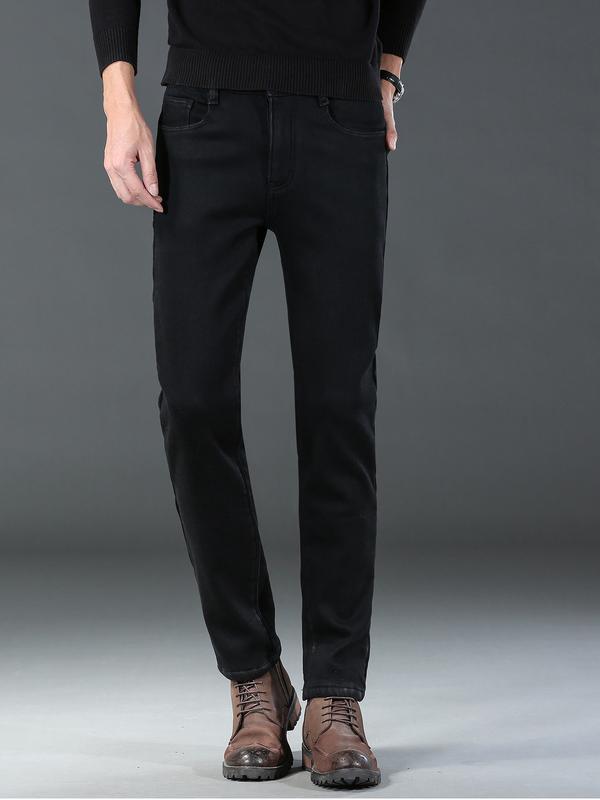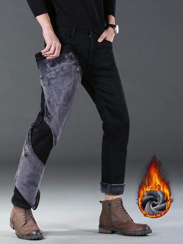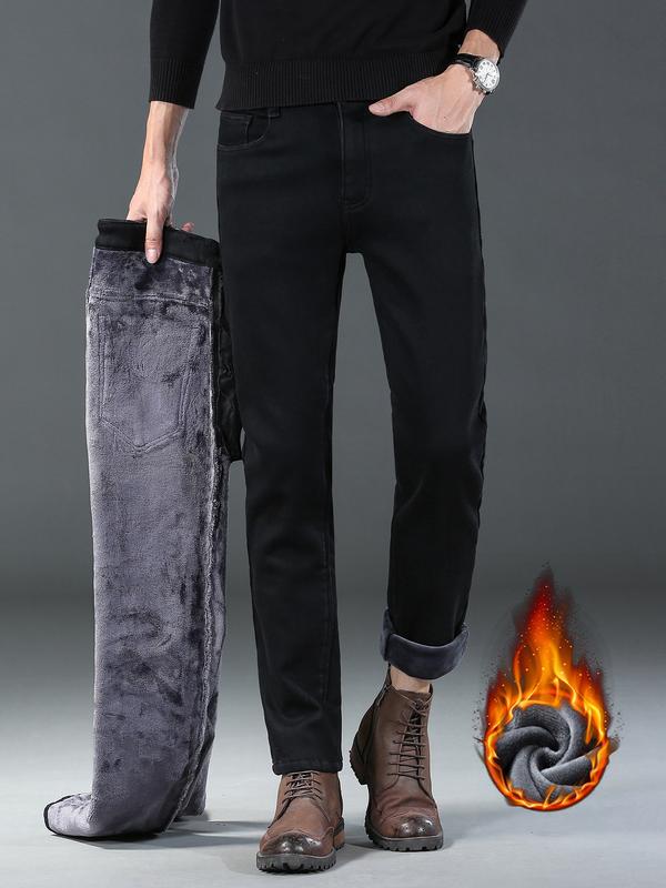 Men's Thick Winter Denim Jeans, High Waist Loose Straight Leg Pants, Fitted Street Style Warm Elastic Casual Trousers #menfashion #mensfashionwear #mensstyleguide #highrisejeans #slimfitjeans #pacsunlowrisejeans #fleecelinedtightsforblackwomen #wintermensstyle #thermaljeans #menswearstyle