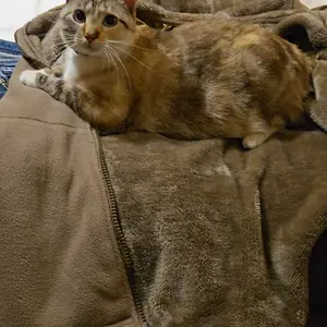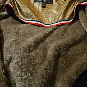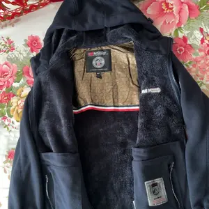This jacket took awhile to arrive but at least it fit. Fleece lined like it showed & said in description. It has 6 pockets that I counted. Its not bad for what it is. It's definitely not a BaerSkin hoodie though! Not sure what the vinyl piece is in the middle. My kitten sure likes the jacket! 🤪😂