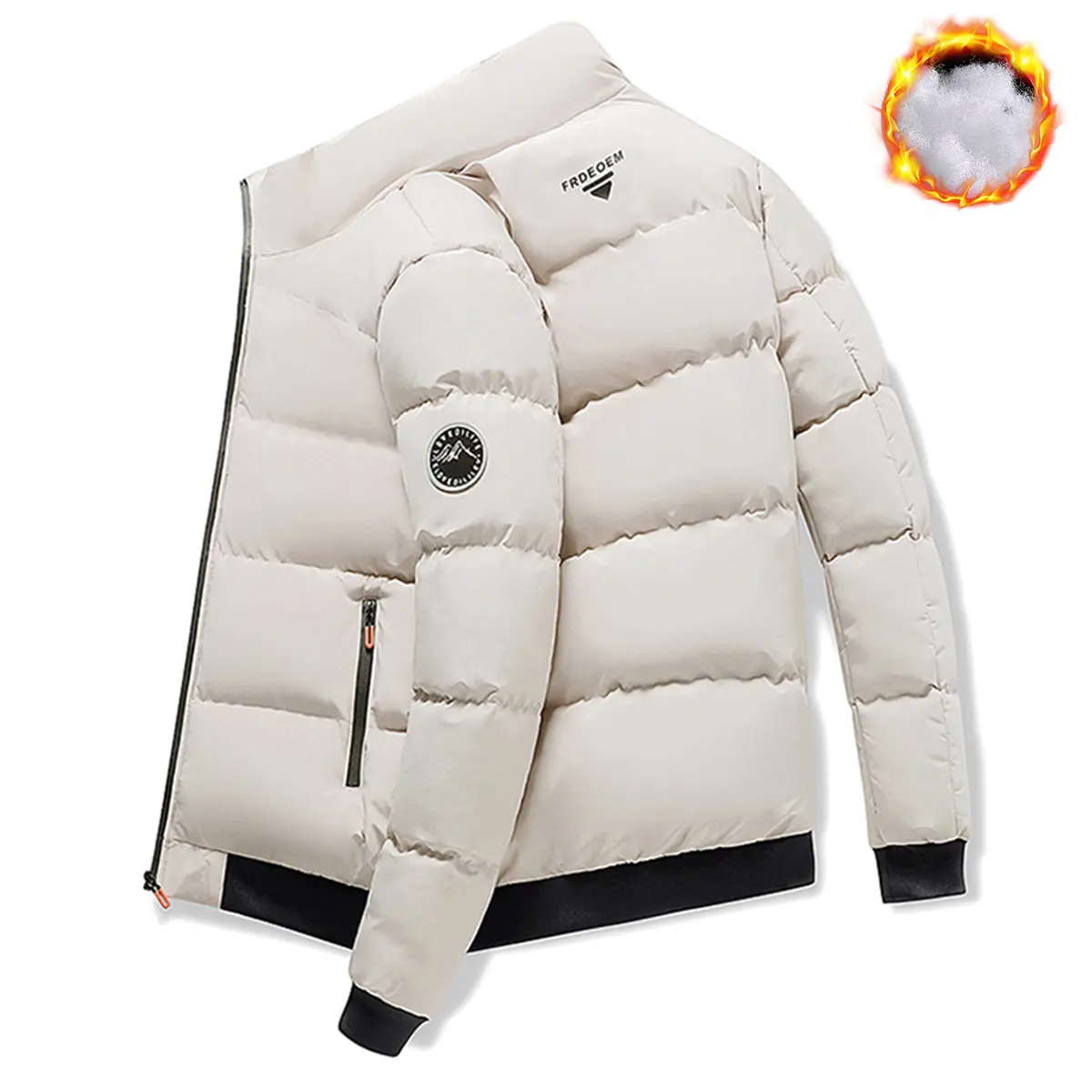 5. Men's Winter Jacket Full Zip & Stand Collar - Windproof Coat, Skiing, Outdoor Activities Casual Wear - Ideal Cold Weather Gift for Husband, Men's Winter Jacket