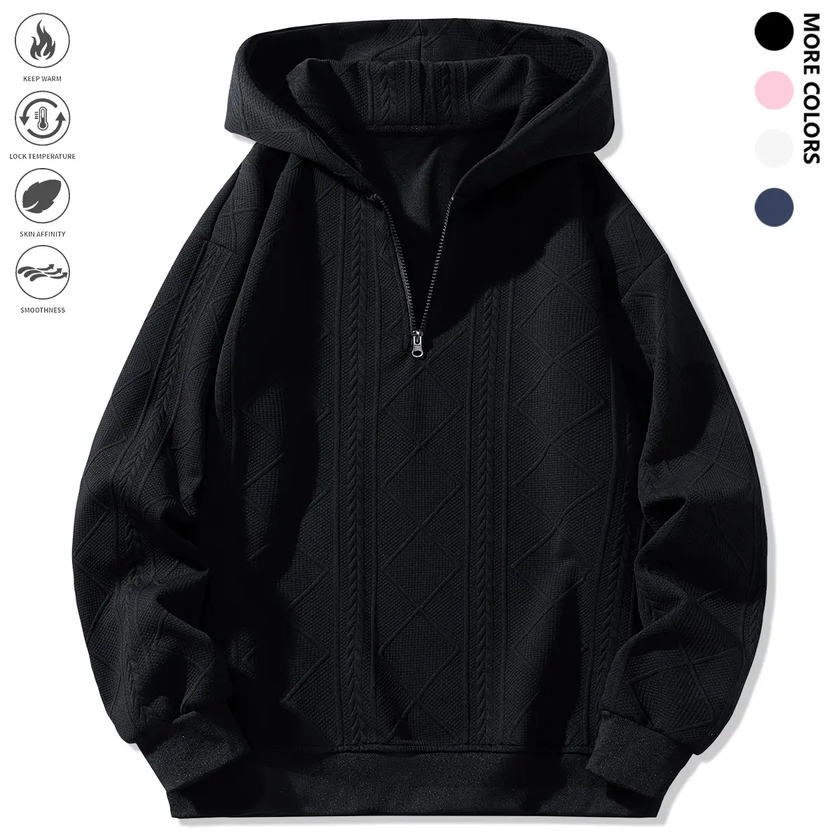 Men's Winter Casual Zip-Up Hoodie - Loose Fit Long Sleeve Pullover with Adjustable Hem, Solid Color Design, Suitable for Outdoor Activities and Everyday Wear, Machine Washable