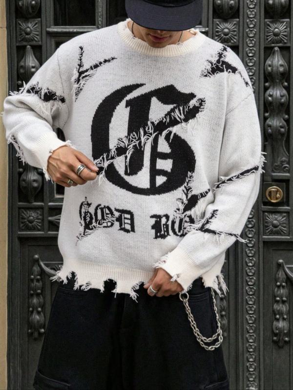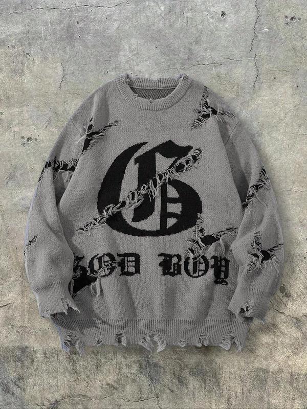 5. Men's & Women's Street Gothic Letter Print Sweater, Casual Loose-Fit Knitted Pullover, Round Neck Long Sleeve Drop Shoulder Top, Knitwear