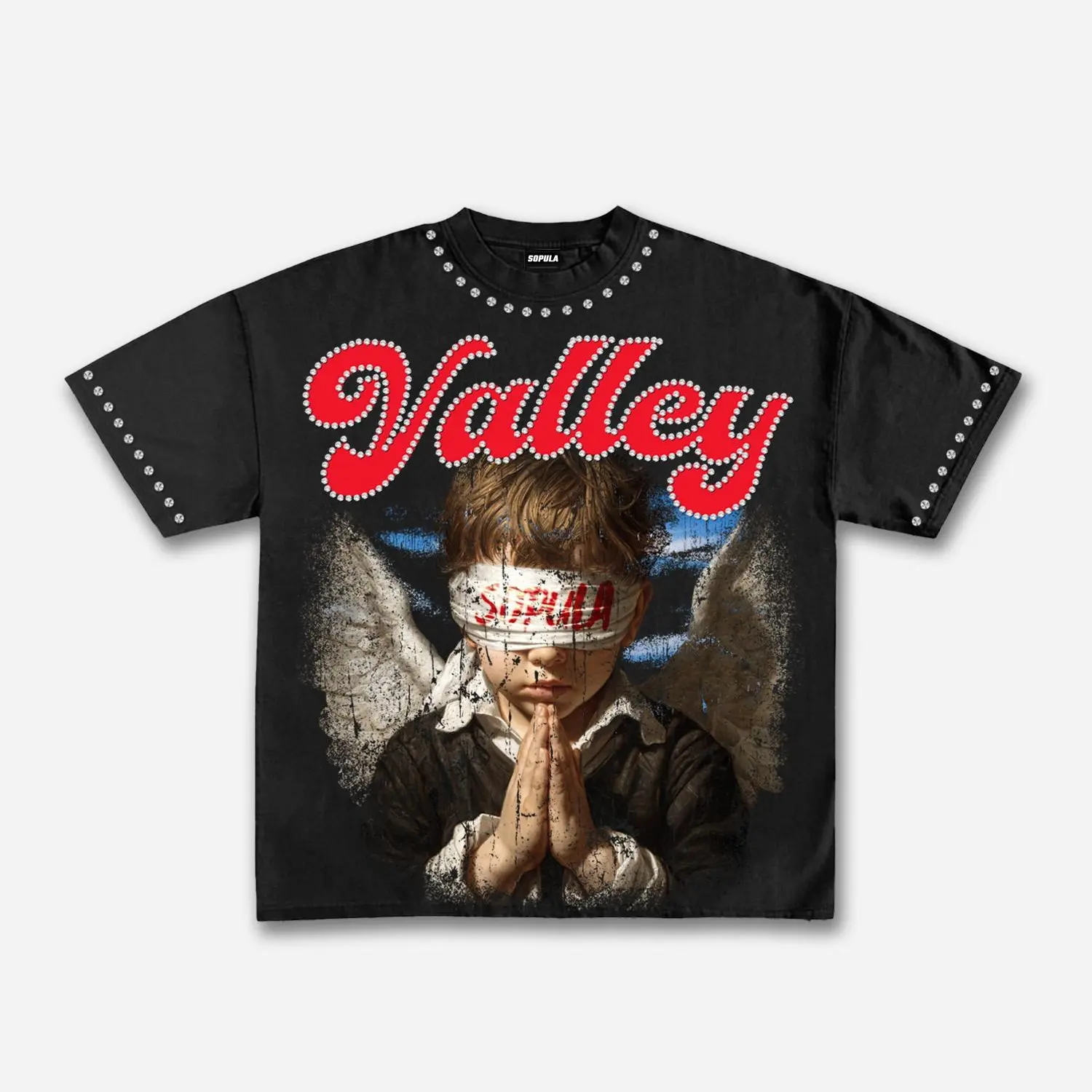Sopula Studio Men's Valley Prayer Angel Vintage Distressed Graphic Cotton T-shirt SpringStatements Casual Streetwear Top Casual Street Comfy