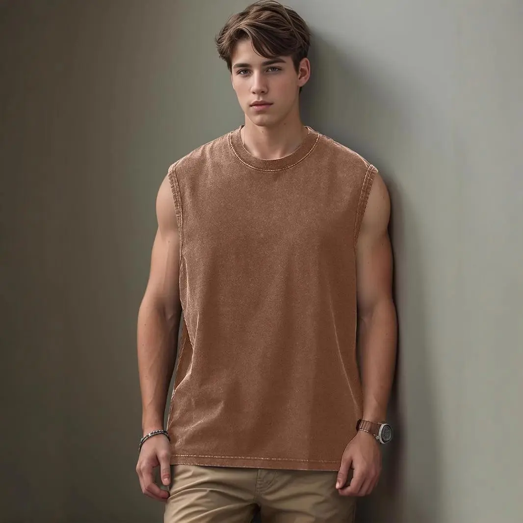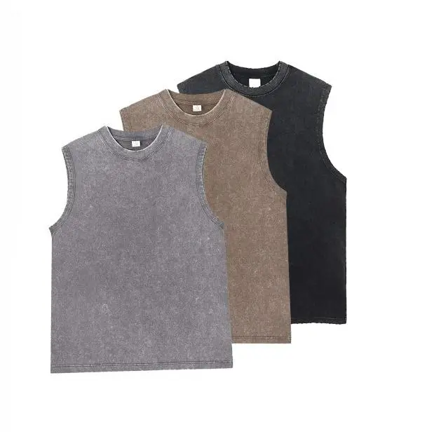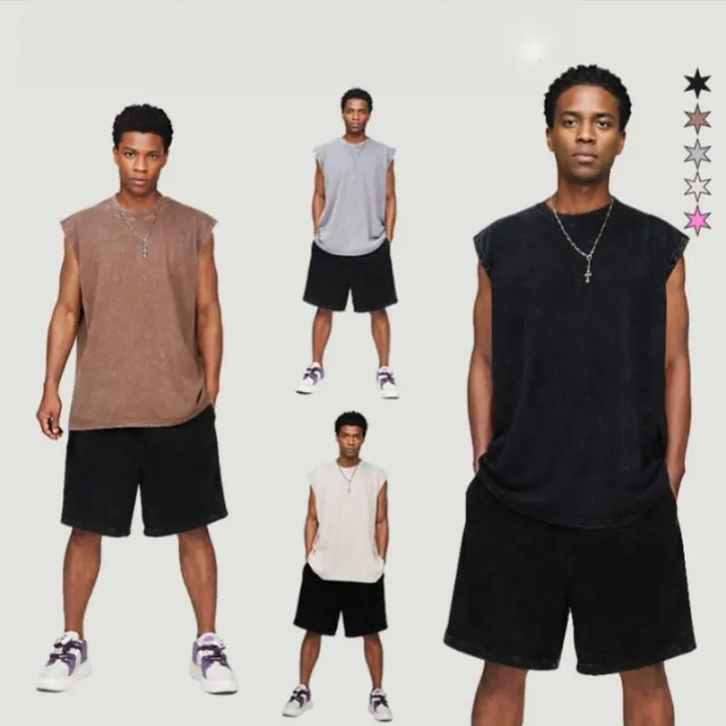 Vintage Acid Wash Cotton Tank Tops for Men Women Gym Workout Bodybuilding Sports Vest Summer Casual Sleeveless Tees Tops