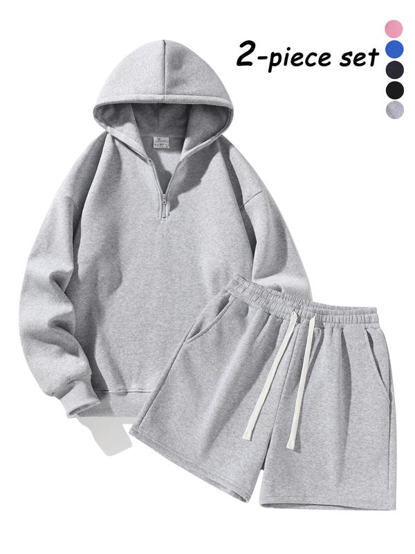 Men's Half-Zip Hoodie with Shorts Two-Piece Set, Streetwear Tracksuit Set, Basic Style Comfortable and Warm Sports Jogging Set, Suitable for Daily Wear, Outdoor Activities, Running and Workouts – Available for Men and Women.