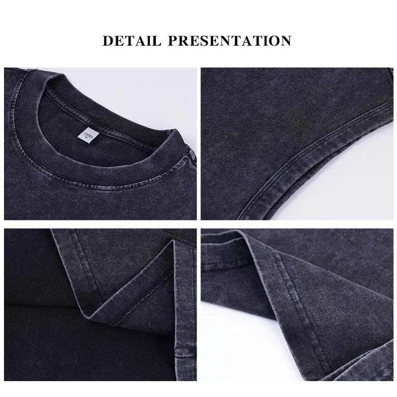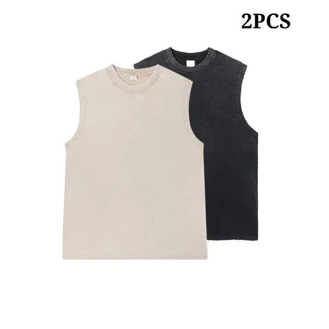 Vintage Acid Wash Cotton Tank Tops for Men Women Gym Workout Bodybuilding Sports Vest Summer Casual Sleeveless Tees Tops