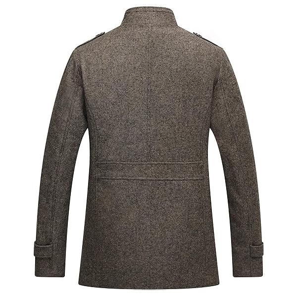 Men's Wool Blend Jacket Stand Collar Windproof Pea Coat