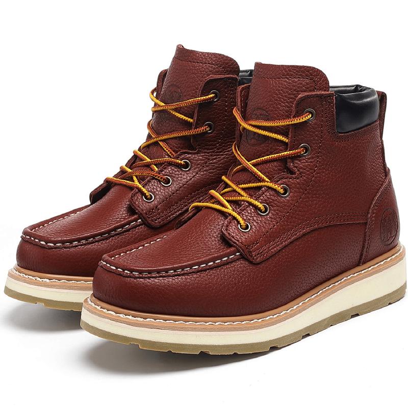 【Sturdy & Durable】These work boots are built with injection molding process, ensuring durability that withstands the rigors of hard labor. The crazy horse leather is incredibly strong, and the long-wearing PU+TPU outsole provides lightweight, slip-resistant, and long-lasting performance.