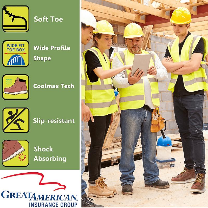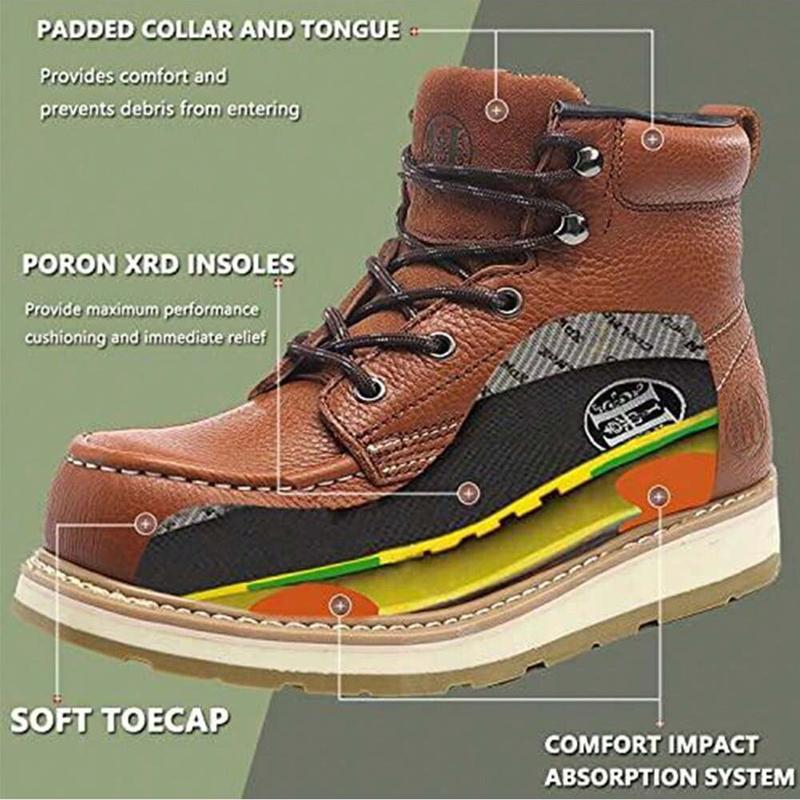 【Minimal Break-in Period】These lace-up work boots for men are lightweight and offer a lace-up closure for a secure fit. They provide increased flexibility in the uppers and soles, allowing for agile movement and a comfortable, adaptable fit. Additionally, the PORON insoles provide maximum support, immediate relief, and consistent impact absorption, even after repeated impacts and long-term use.