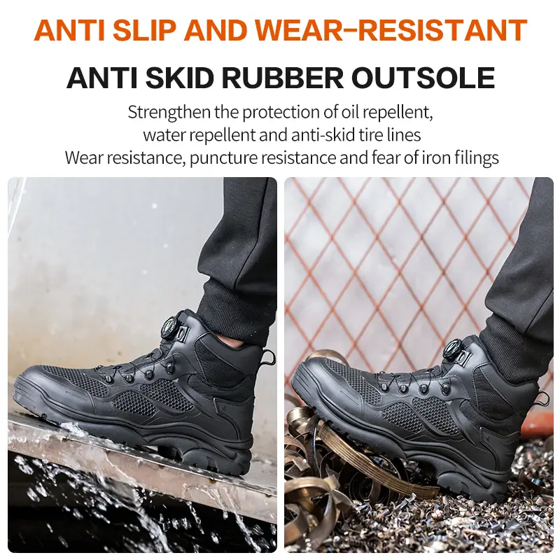 Anti-slip work shoes: The steel toe sneakers feature an anti-slip design and provide excellent grip on all kinds of surface. Whether you are working on slippery ground or uneven terrain, these shoes provide enhanced stability to prevent accidents and injuries.