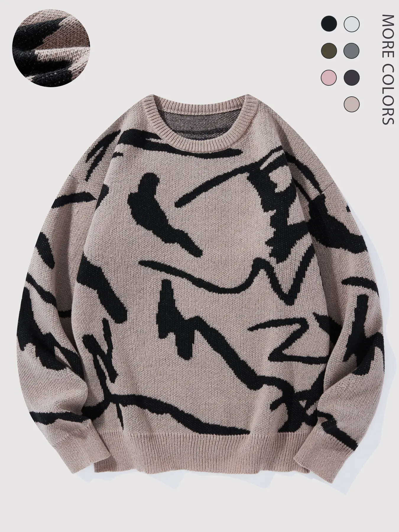 5. #Springfresh Men's Knitted Long Sleeve Sweater Crew Neck Y2K Graphic Casual Regular Fit Jumper for Fall & Winter Stylish Breathable Pullover Sweater Menswear Outfit Stylish Tops Grey Chinos Aesthetic Loose Fit Crewneck Fashionable Knitwear SpringStatement