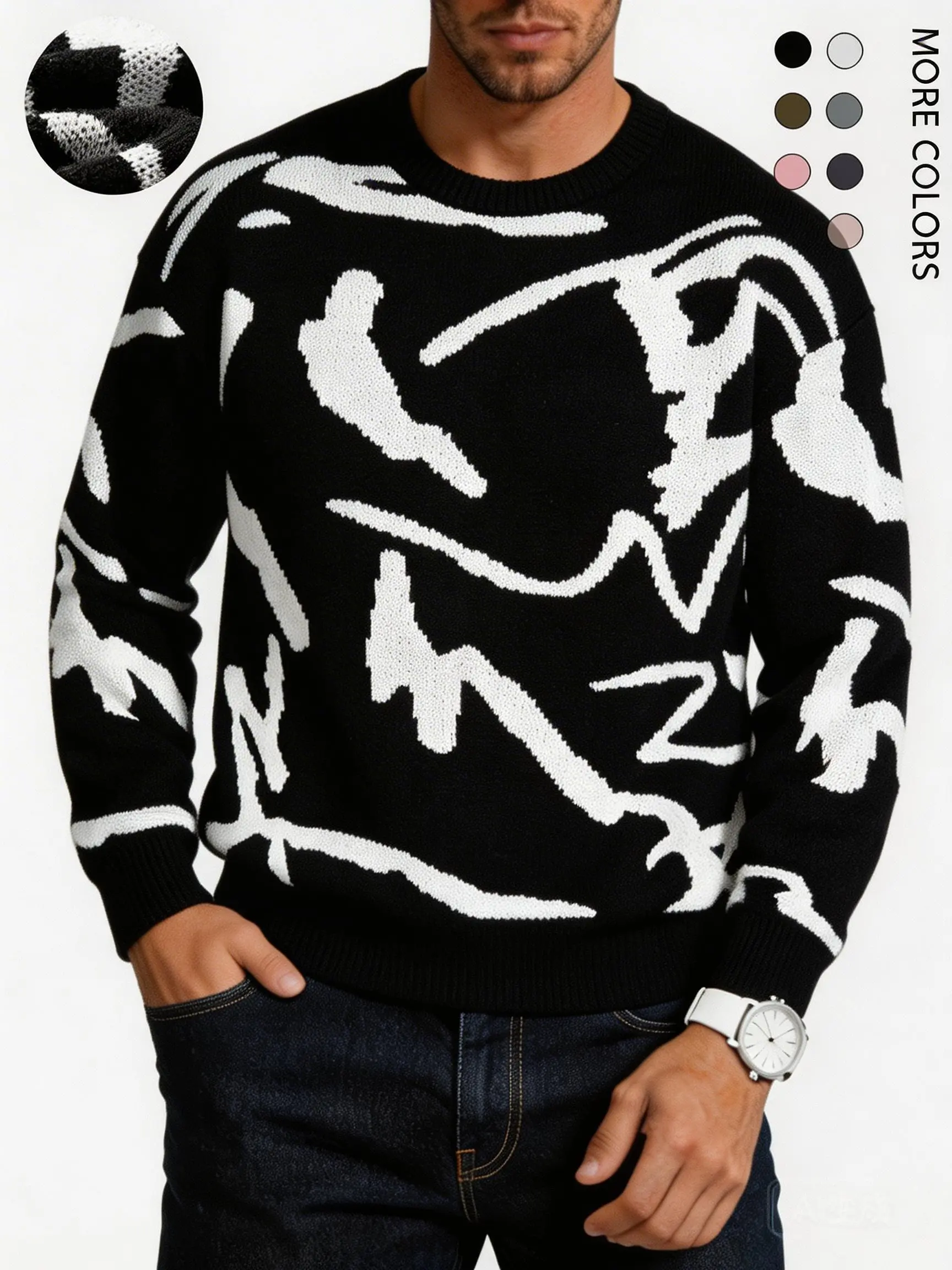 #Springfresh Men's Knitted Long Sleeve Sweater Crew Neck Y2K Graphic Casual Regular Fit Jumper for Fall & Winter Stylish Breathable Pullover Sweater Menswear Outfit Stylish Tops Grey Chinos Aesthetic Loose Fit Crewneck Fashionable Knitwear SpringStatement
