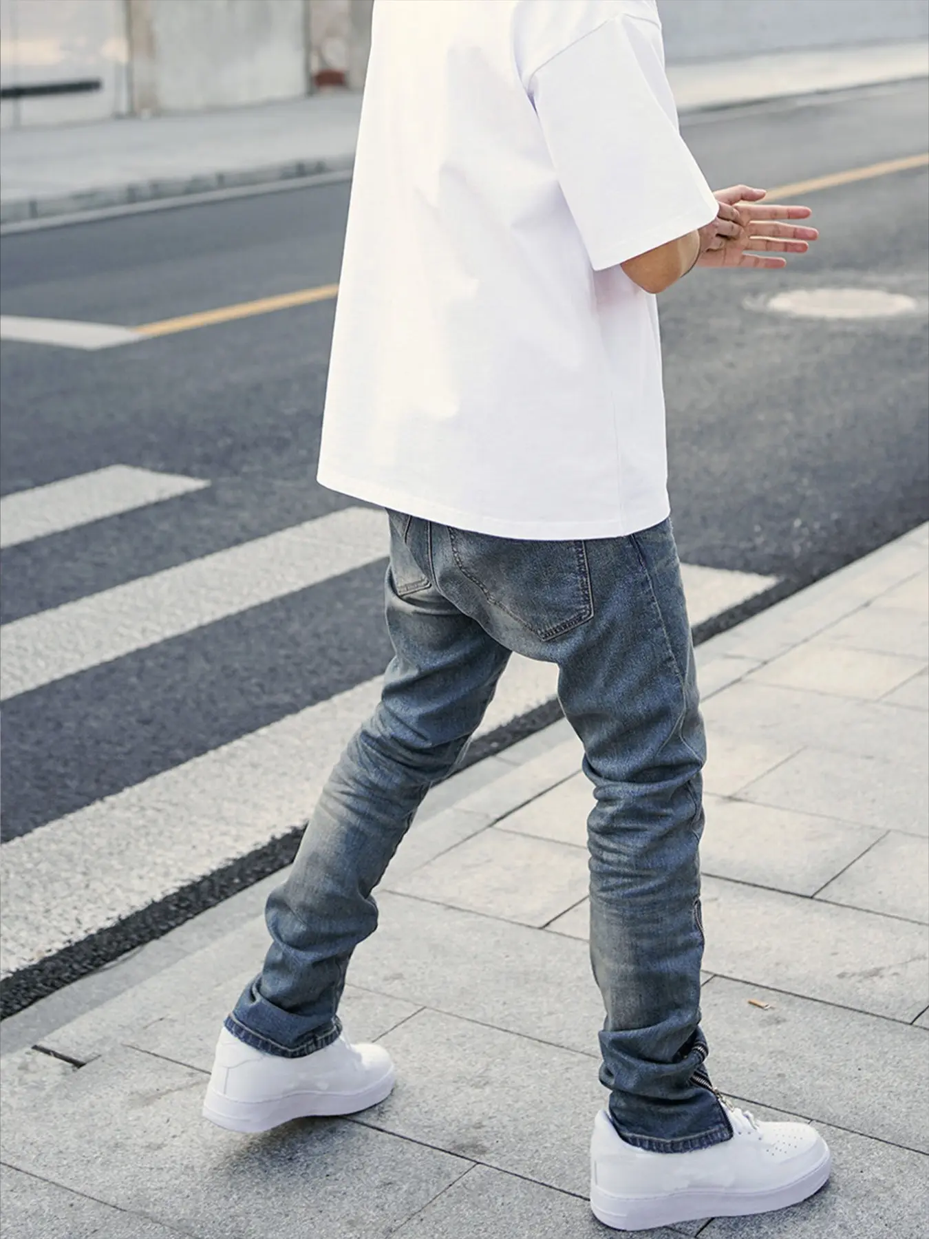 5. Men's Y2K Street Fashion Light Blue Distressed Jeans | Slim-fit Jeans with Ankle Zippers, Millennium Street Style Denim Pants, Essential for Urban Street Fashion