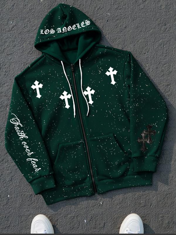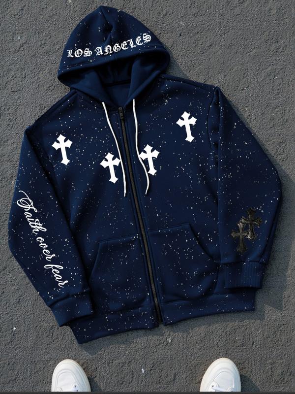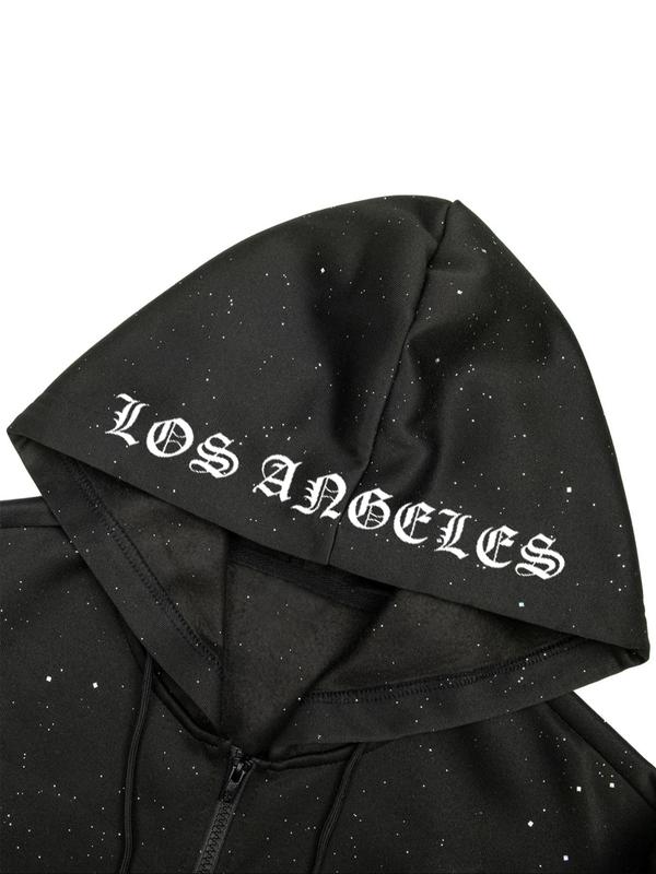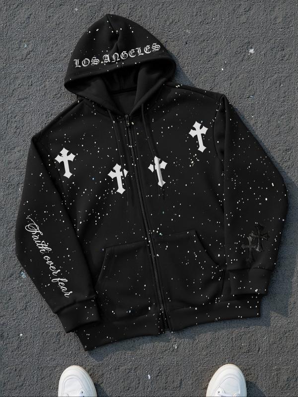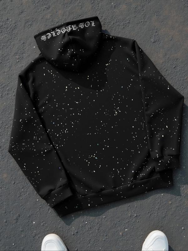 Men's Zip Up Hoodie Sweatshirt, Fashion Starry Shiny Fashion Hooded, Loose Casual Long Sleeve Pullover For Fall Outfits & Winter Outfits, Thick Soft Fabric, Mens Top For Daily Wear, Graphic Print Hoodie