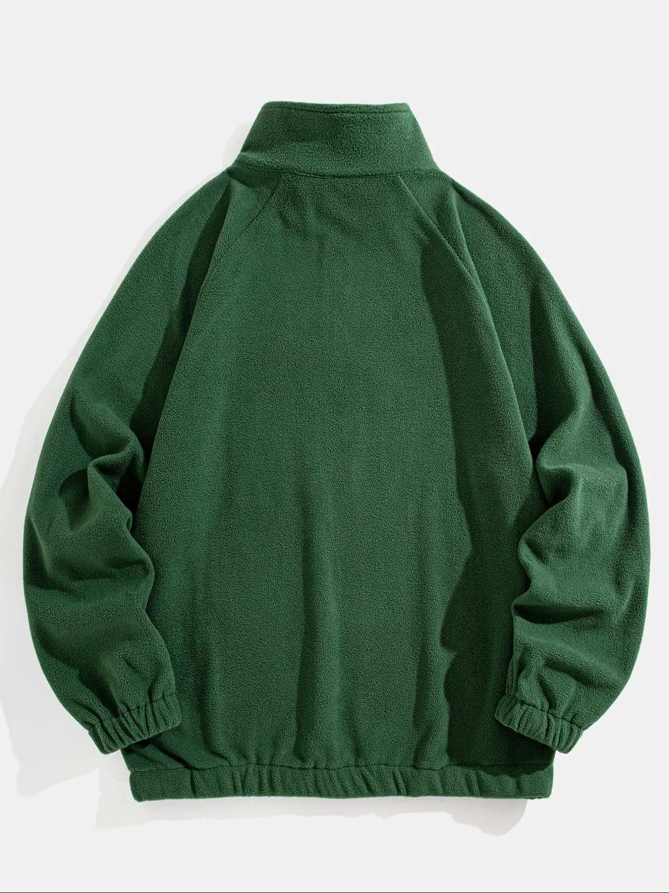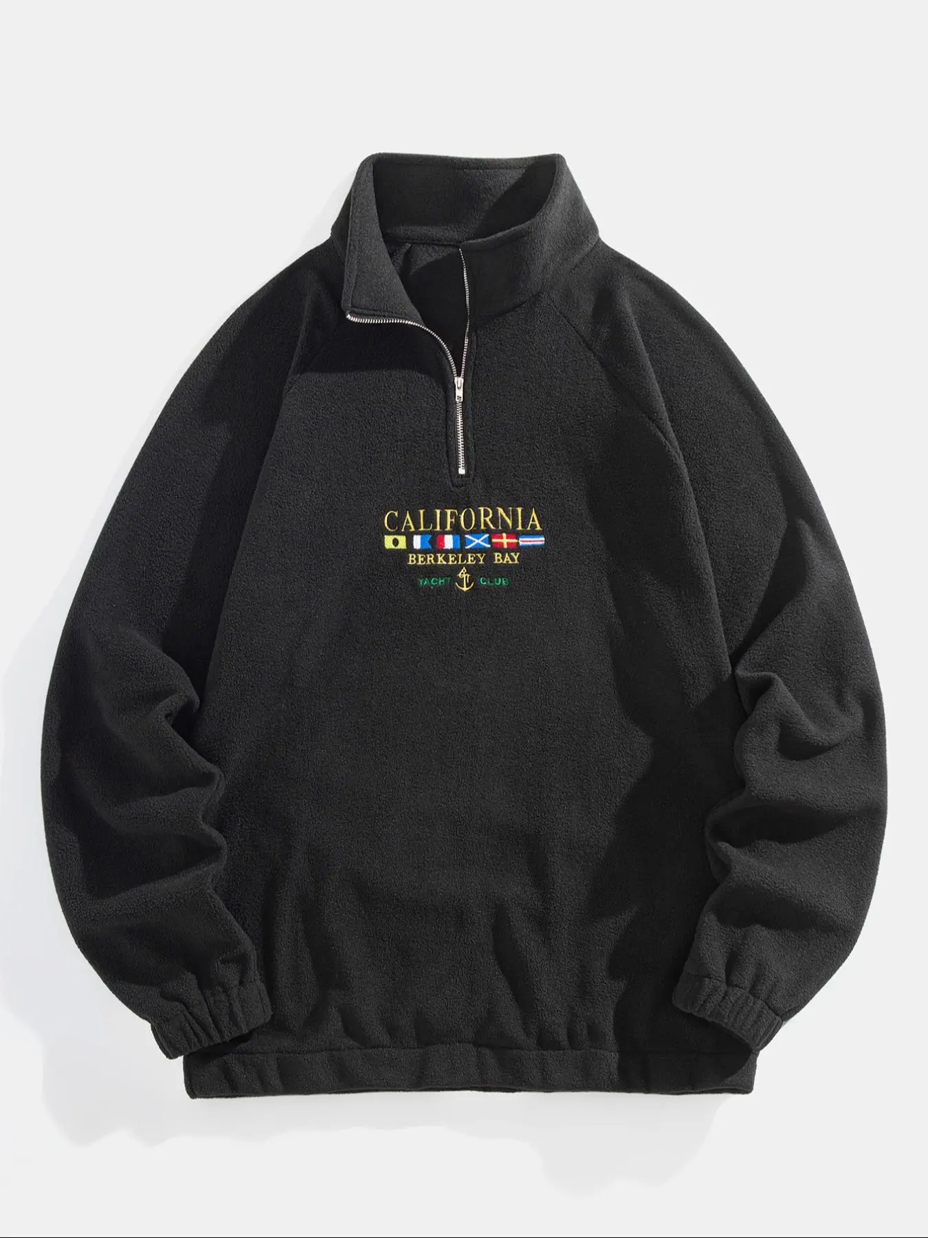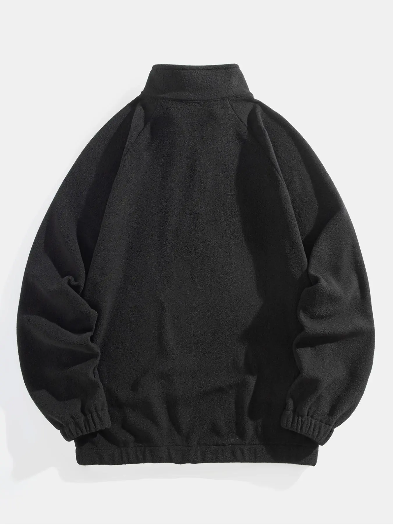 Runs a bit small, feels good has a good fleece texture the zip is good quality good for the price looks solid