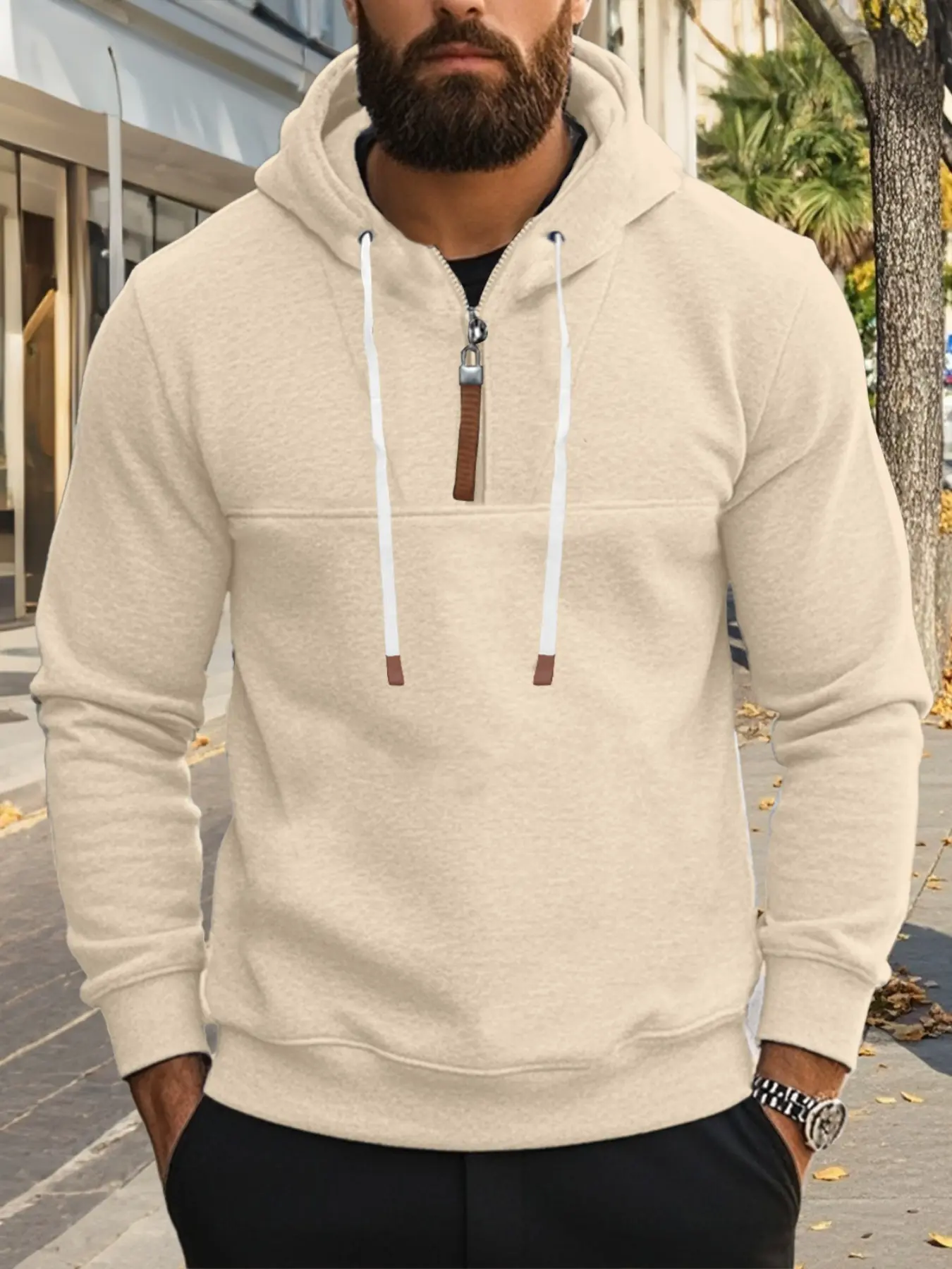 Men's Simple Zipper Hem Basic Style Hoodie, Regular Version Piece Design Casual Long Sleeve Sweatshirt, Suitable for Autumn and Winter, Loose Version Men's Daily Wear, Long Sleeve, Hooded Sweatshirt, Menswear