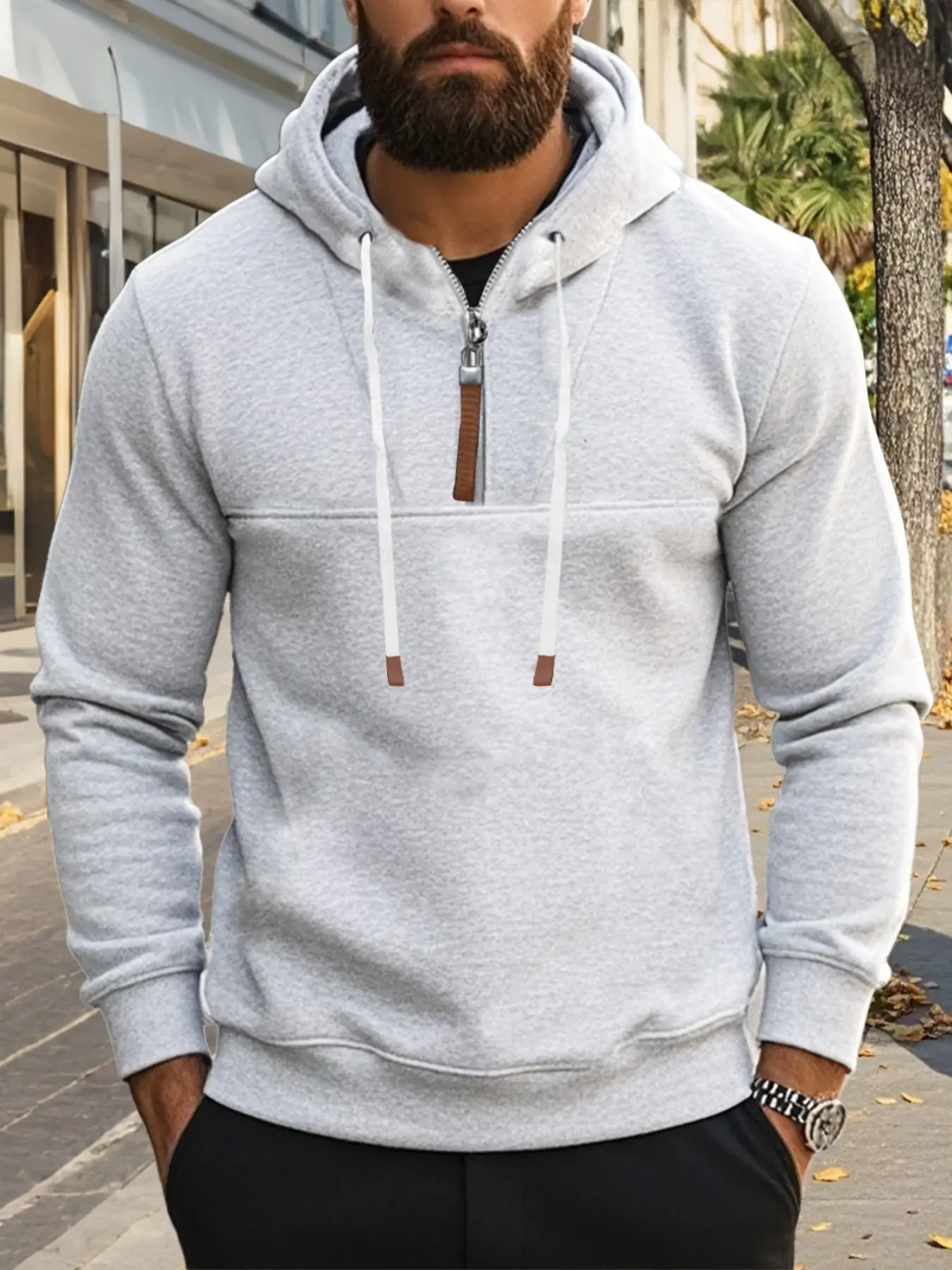 5. Men's Simple Zipper Hem Basic Style Hoodie, Regular Version Piece Design Casual Long Sleeve Sweatshirt, Suitable for Autumn and Winter, Loose Version Men's Daily Wear, Long Sleeve, Hooded Sweatshirt, Menswear