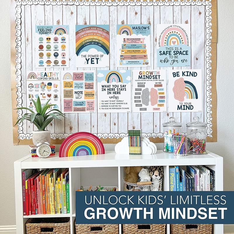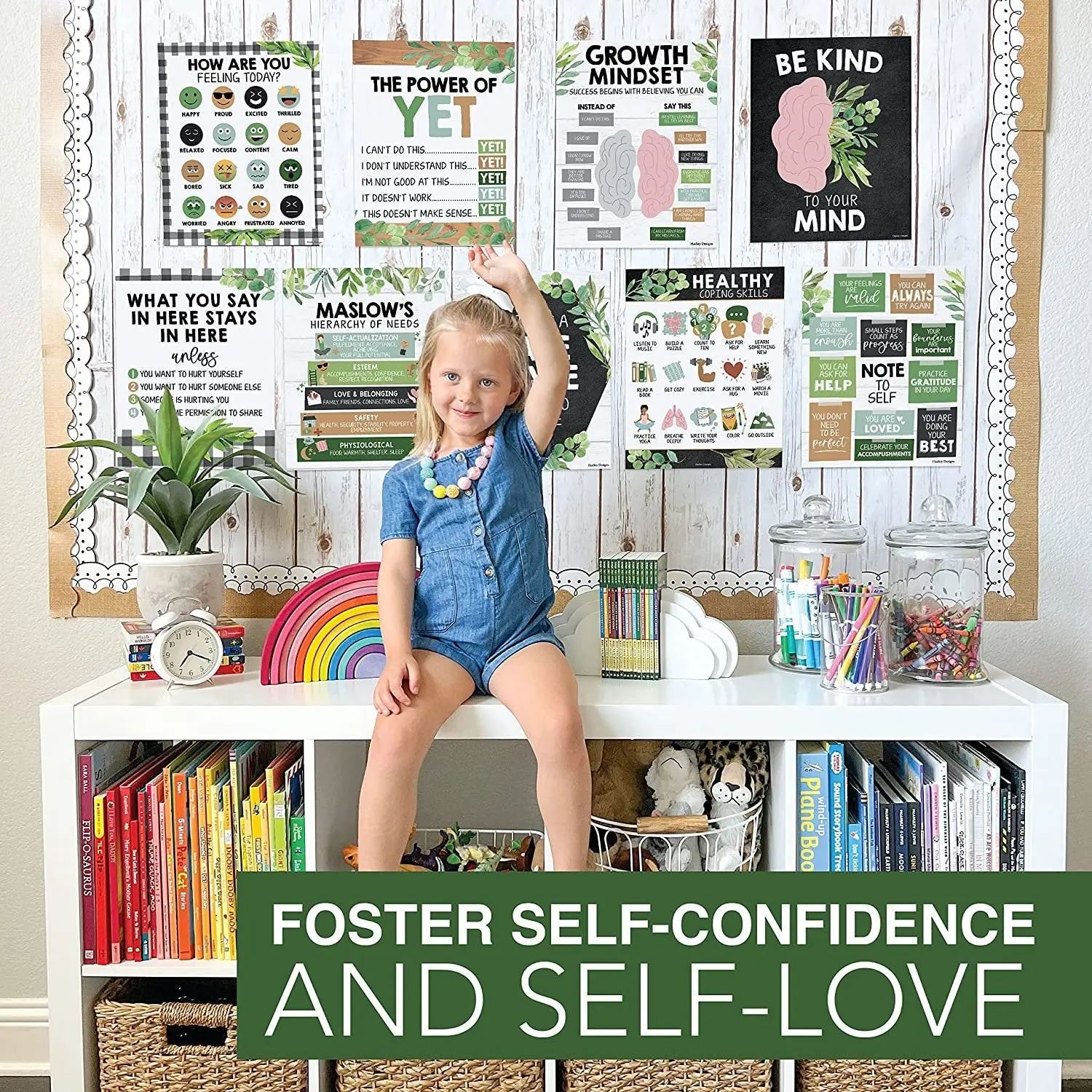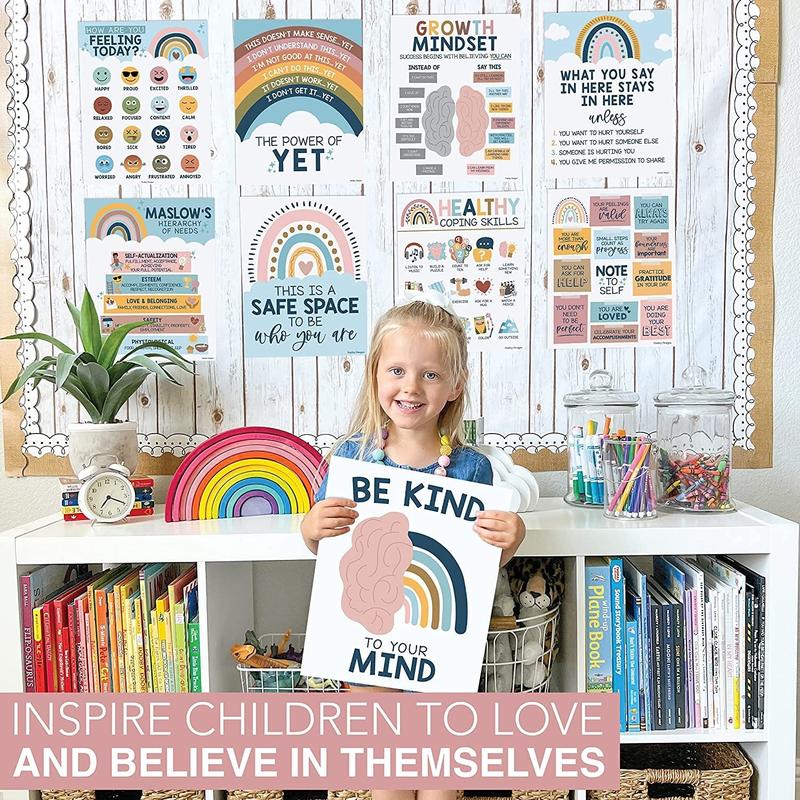 Boost self-esteem and self-worth as children develop lifelong coping skills. Use these posters as counseling aids or classroom decor to make mental health approachable. From feelings charts to the "Power of Yet," each poster empowers children to express themselves and seek help when needed.