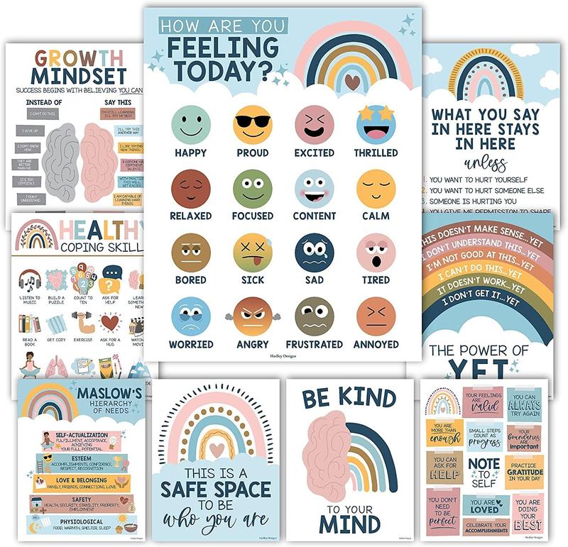 ·Help Children Feel Seen And Understood; You'll receive 9 - 11x14" mental health posters for office/classrooms; Use this feelings chart for kids calm down corner classroom decor to make kids feel comfortable discussing big emotions
