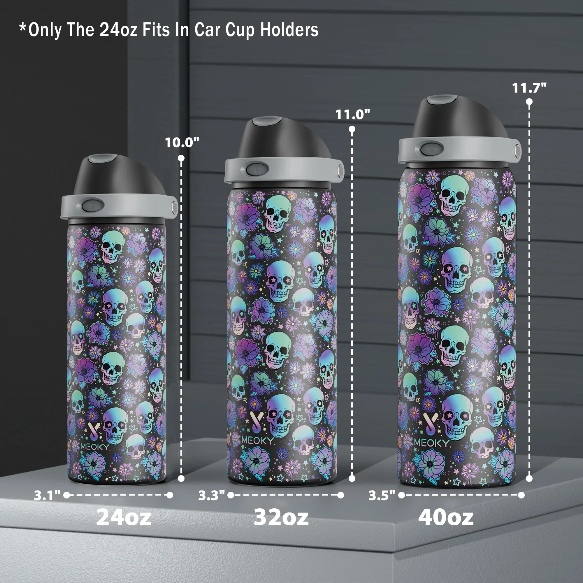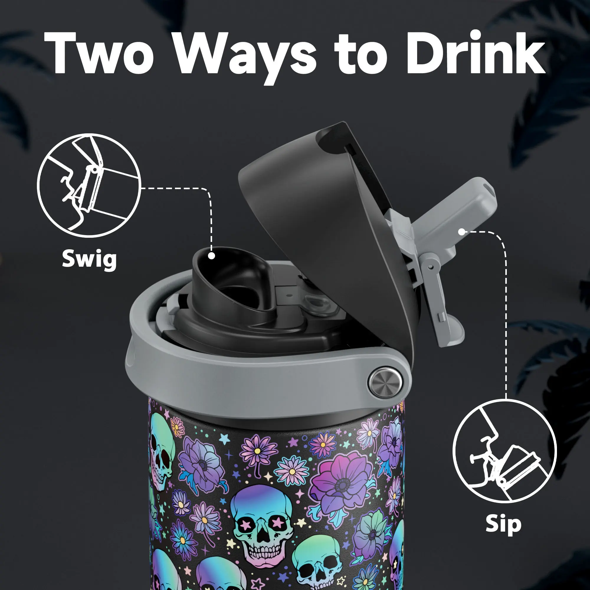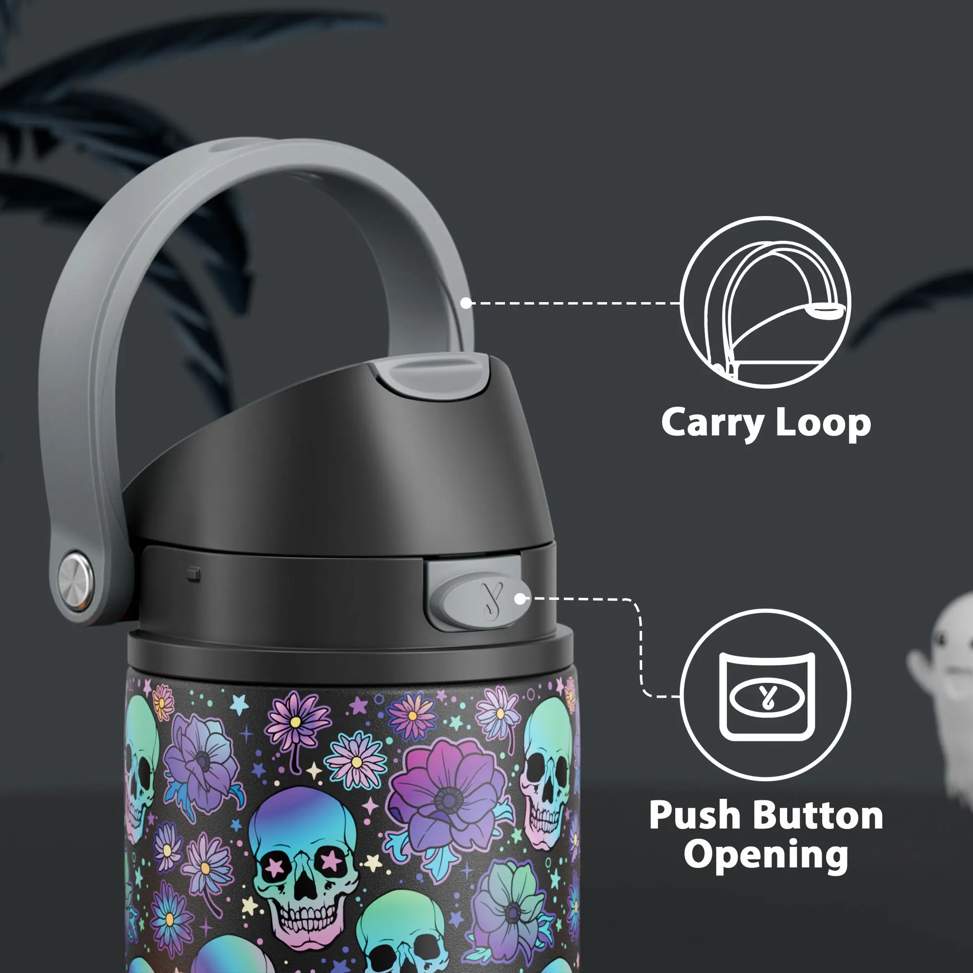 Black flower skull, 24oz