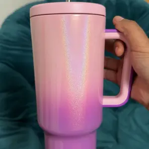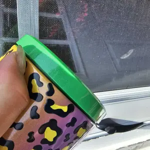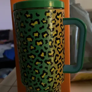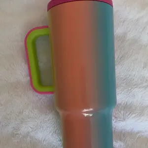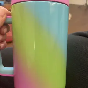The picture does not do it justice. This tumbler is absolutely beautiful. Named UV rainbow but to me it’s a chrome ombré. It blends from magenta to yellow then blends together slightly for green. The tumbler then goes from blue to a sherbet orange or kind of a peach. Best design so far.