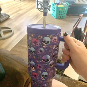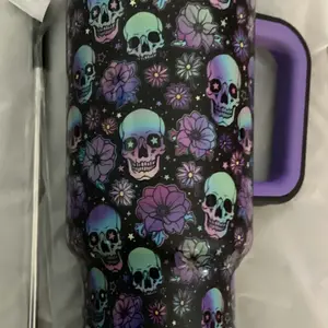 Absolutely in love with this cup! I was able to snag her during re-stock!! The sugar skull design should be a year round item!! The photos and pictures don't do this cup justice! And I love the sugar skull straw topper.