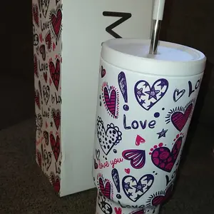My daughter bought this for me for Mother’s Day and I absolutely love it! It hold a lot and it stays cold for a long time too! The images are so pretty and bright and I love the rubber top of the straw to make drinking more comfortable.
