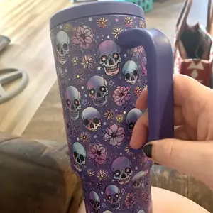 Súper bello,40oz,hacerlo inoxidable,mantiene hasta por 24 horas fríos tus líquidos y al quitar el popote lo podemos usar para el café,la amplitud y forma de la agarradera hace más fácil su uso,los hay en varios modelos,se los recomiendo 🫶💫💕