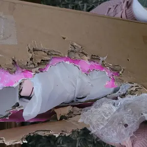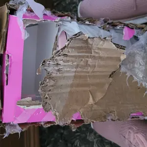 This is how I received my package when i got home . I have a designated box for my packages & I'm not happy with it & would like to receive a refund or send me an undamaged package & product inside