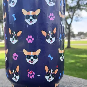 I love it … im just concerned….i bought the corgi one and i love it but i was under the impression it was imbossed or kinda etched into the cup but the one i have is like a sleeve put over it and you can see a different design underneath it and it a little concerning that the plastic or stick will peel off at some point . I still love it as I have two corgis and it is no leak.