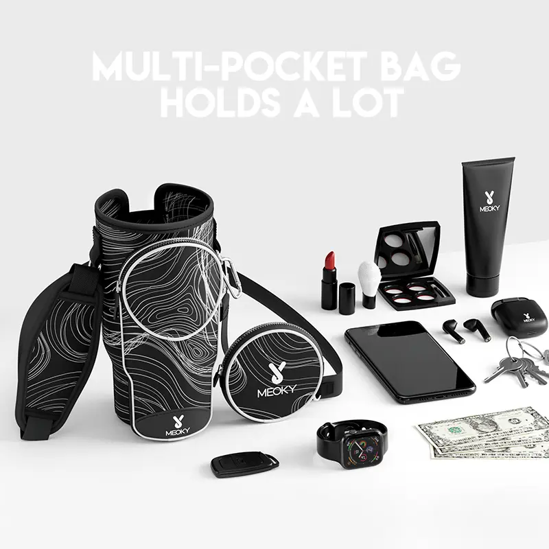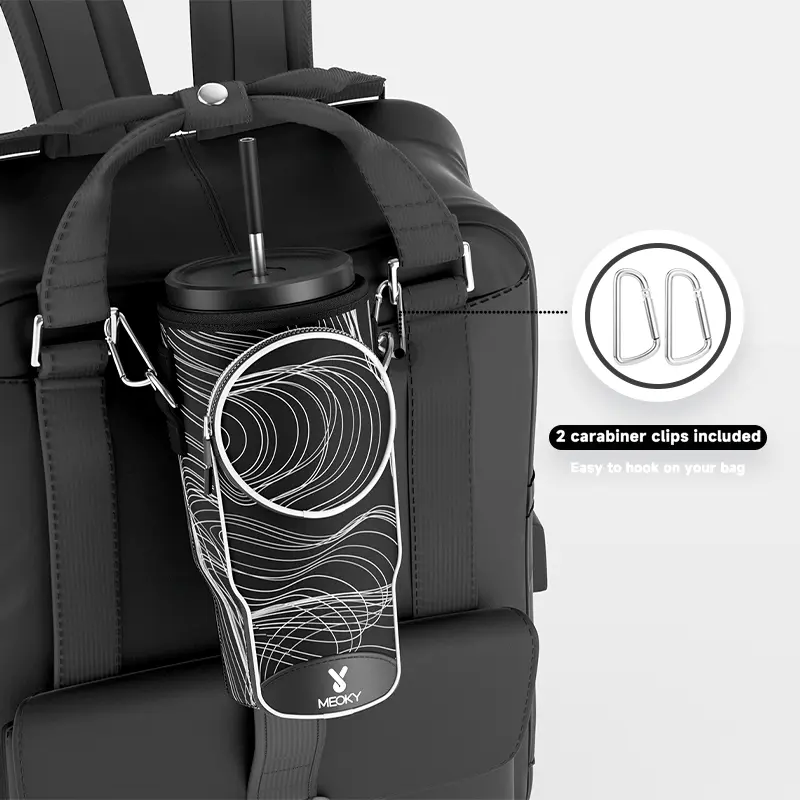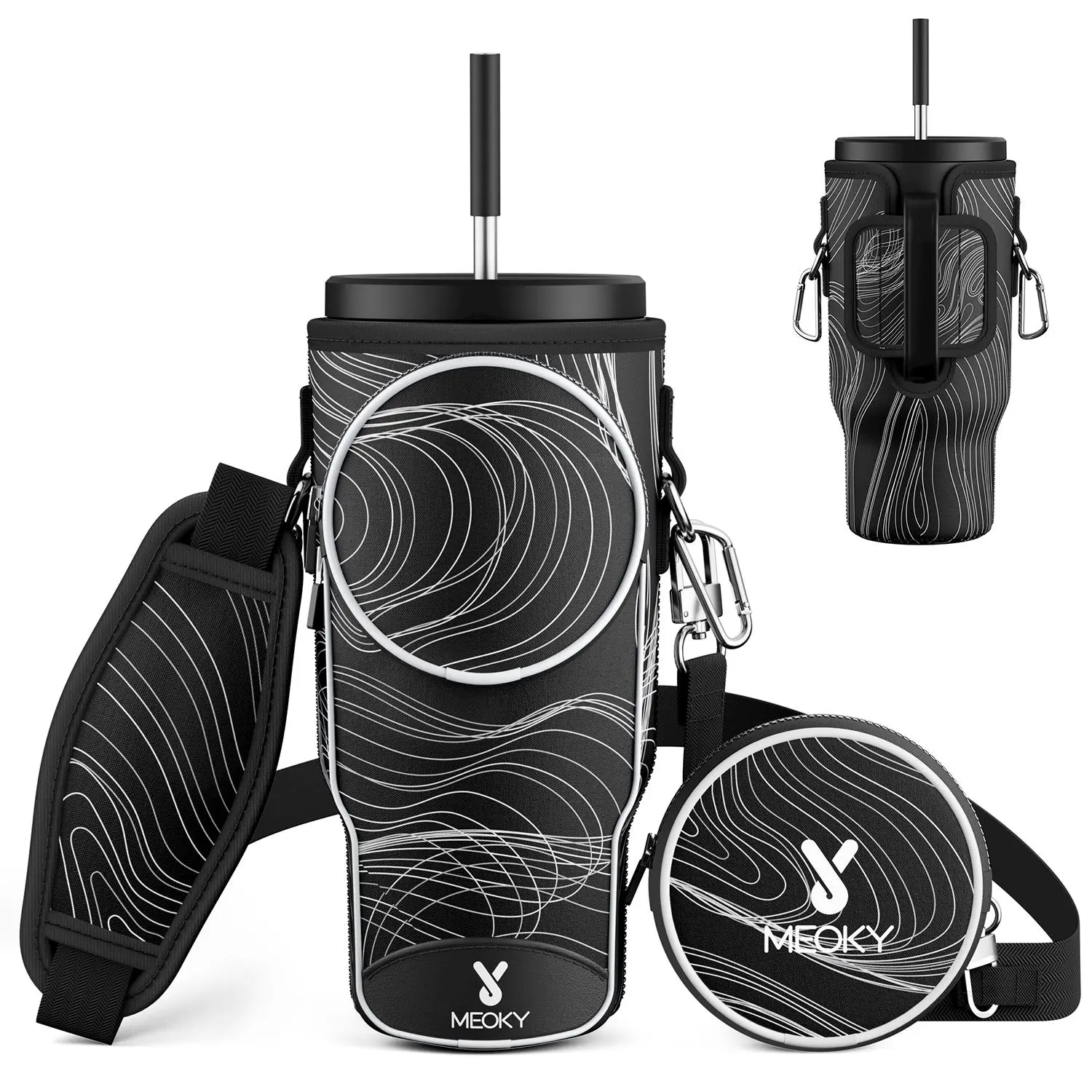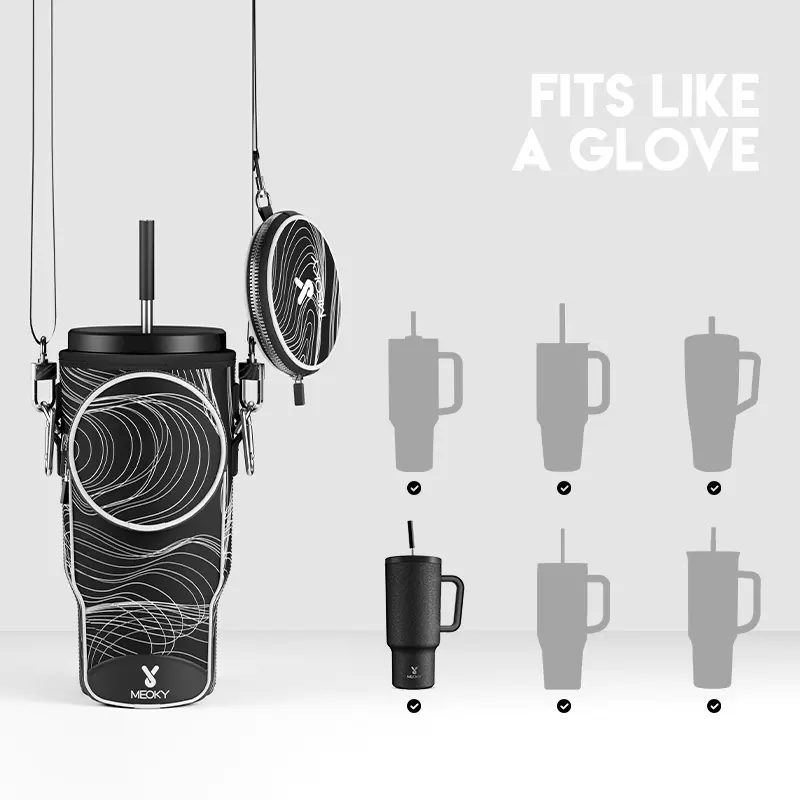 Great 40 ounce Meoky Cup holder. When I ordered it there was suppose to be a bunny pictured on the front and I was missing the strap. But, it works great for holding your cup as long as it comes with the strap. I will say they issued me a refund for the inconvenience and told me to keep the item.