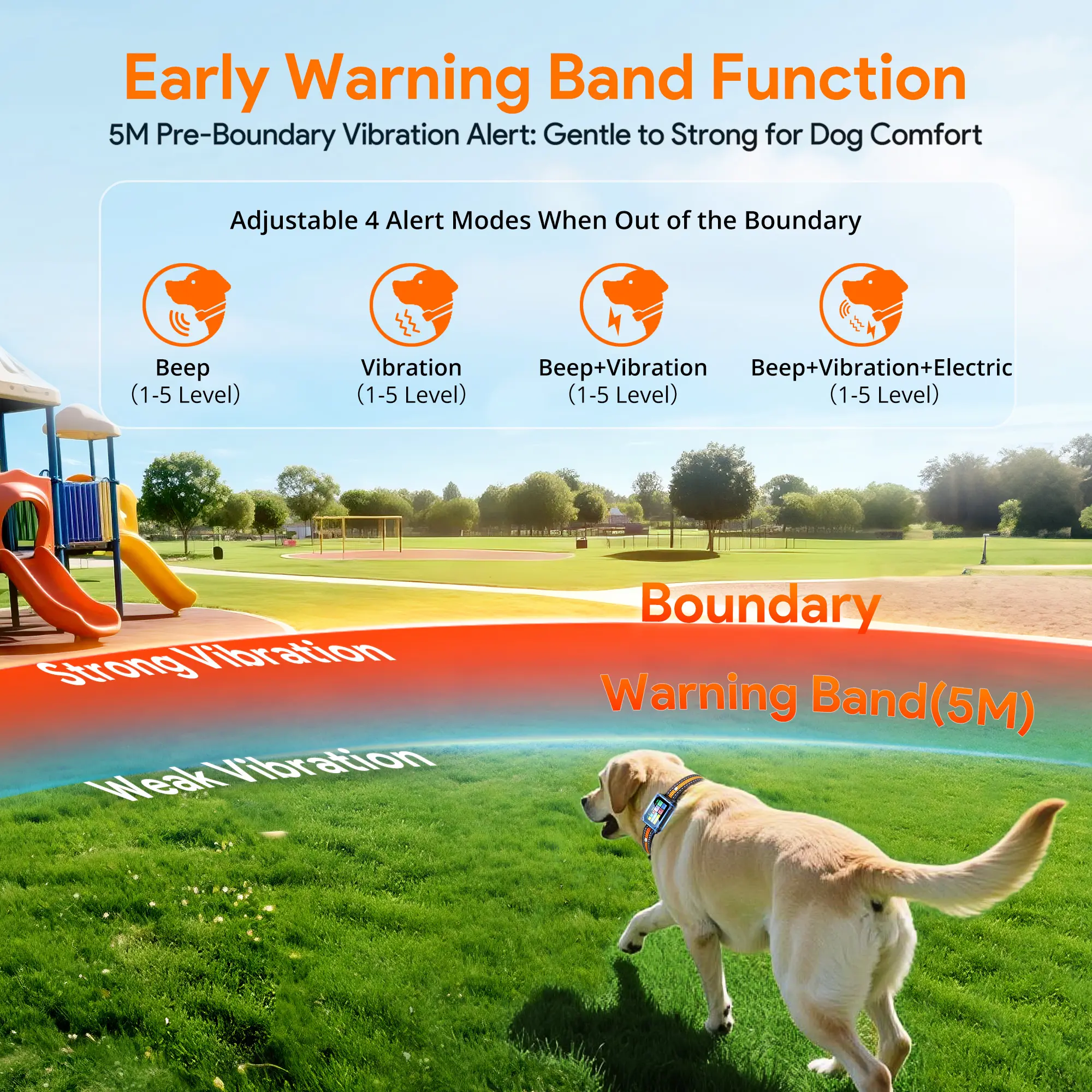 ·Innovative Early Warning Band – 5m before the boundary, gentle vibrations warn your dog, reducing stress and confusion.