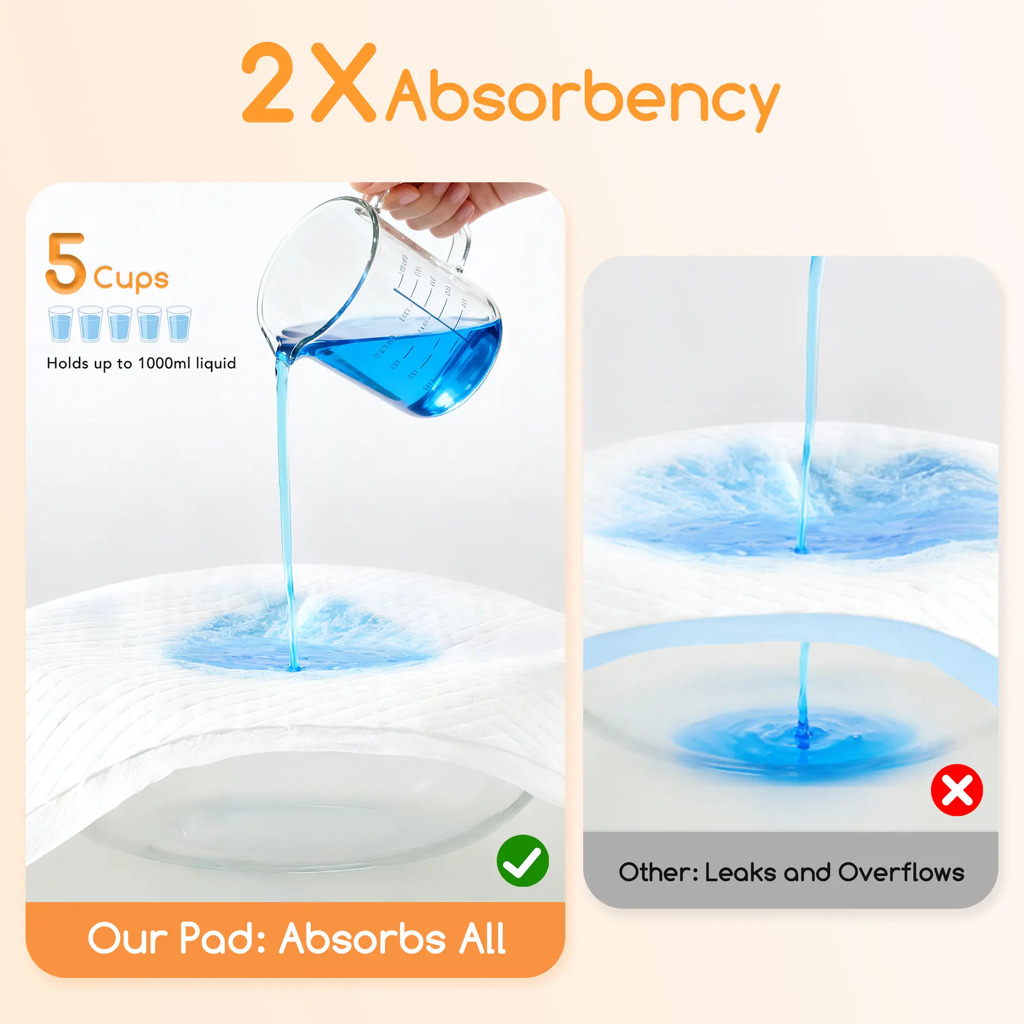 Ā·Meowant puppy pads offer exceptional absorption at a low price. The super-absorbent polymer core holds over 1000 ml of liquid, equivalent to 5 cups. Ideal for daily training, multi-pet households, and long-term use. š§
