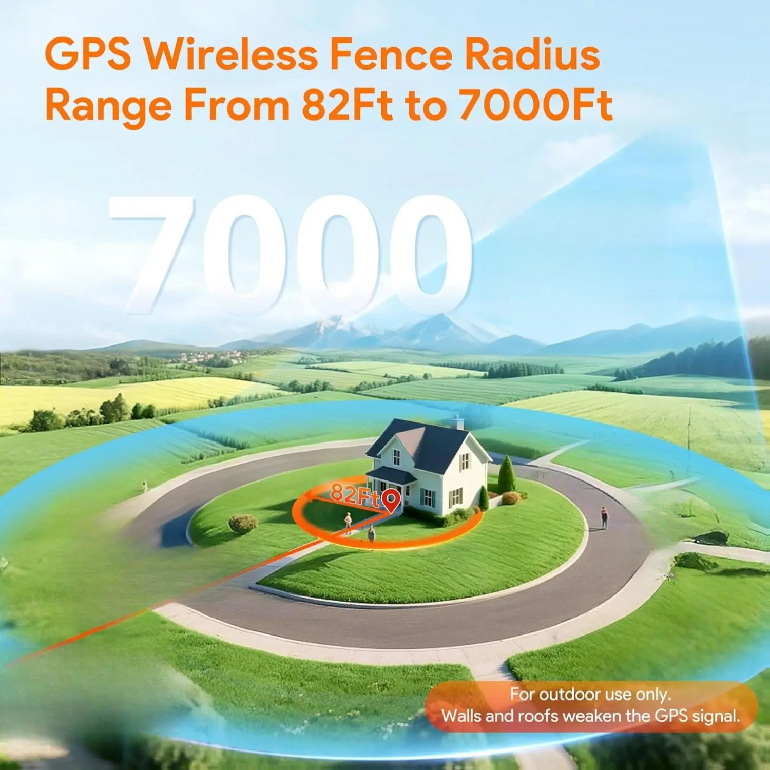 ·GPS drift is about 16 ft. For best performance: Place your fence in a wide open area(avoid tall buildings/trees).Recalibrate occasionally for better accuracy. No GPS signal indoors, but there is GPS signal in open areas outdoors in general.