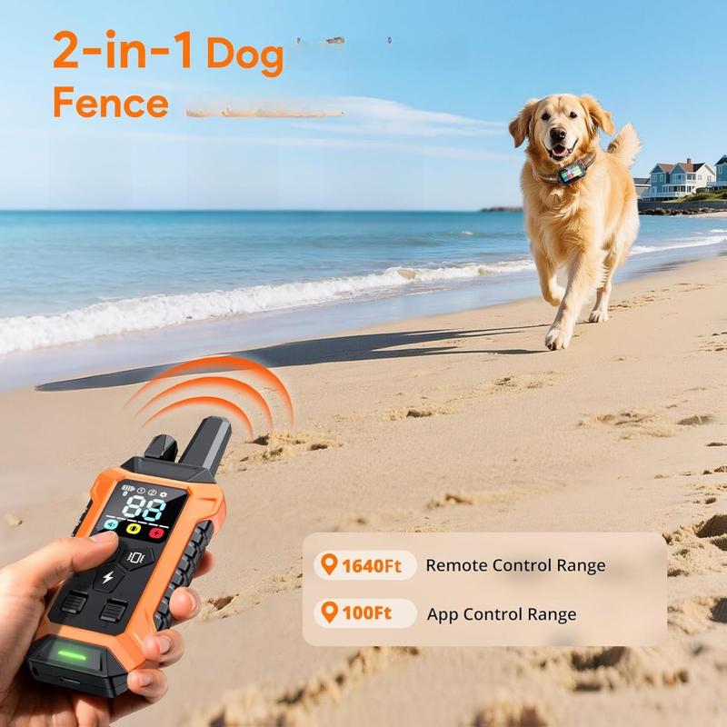 ·2-in-1 Wireless Fence & Remote Trainer: Our GPS Wireless Dog Fence kit includes a training collar and remote, enabling you to train and monitor your dog's behavior with ease. In open areas, you can use the remote to train your dog from up to 1,640 ft away, or connect through the app within 100 ft. The collar boasts 3 training modes—beep (1-9 levels), vibration (1-9 levels), and static stimulation (1-99 levels)—for a personalized training experience