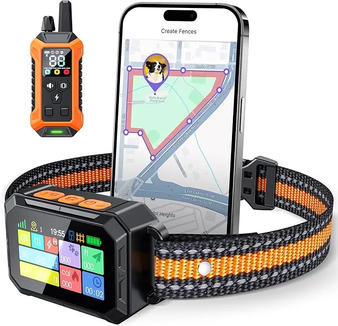 ·GPS wireless dog fence system with dog training features: you can 1. use the collar and free App to set up wireless fences(circle/polygonal)2. use the dog collar only to create wireless fences(circle only) 3. use the collar and remote for dog training 4. use the collar and free app for dog training