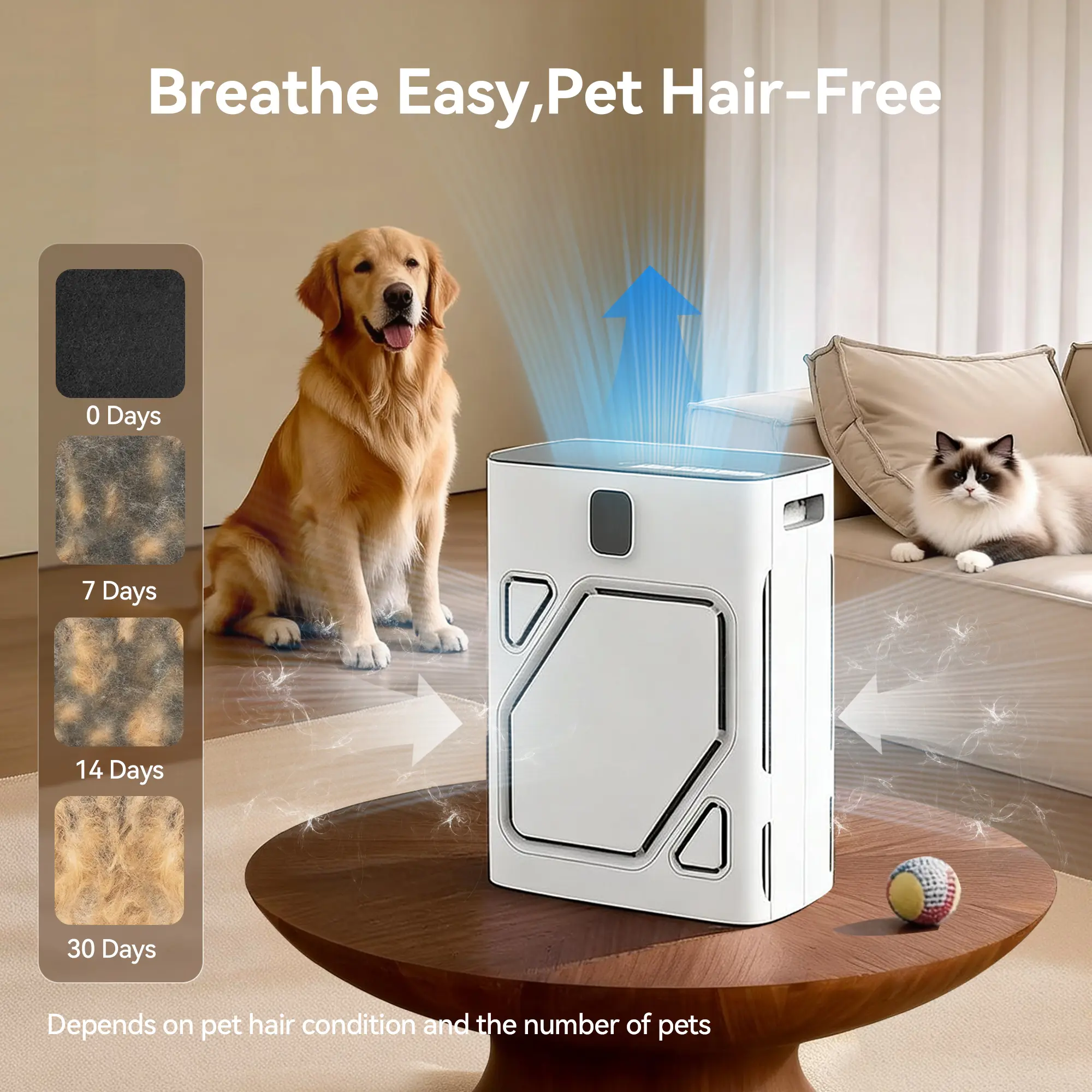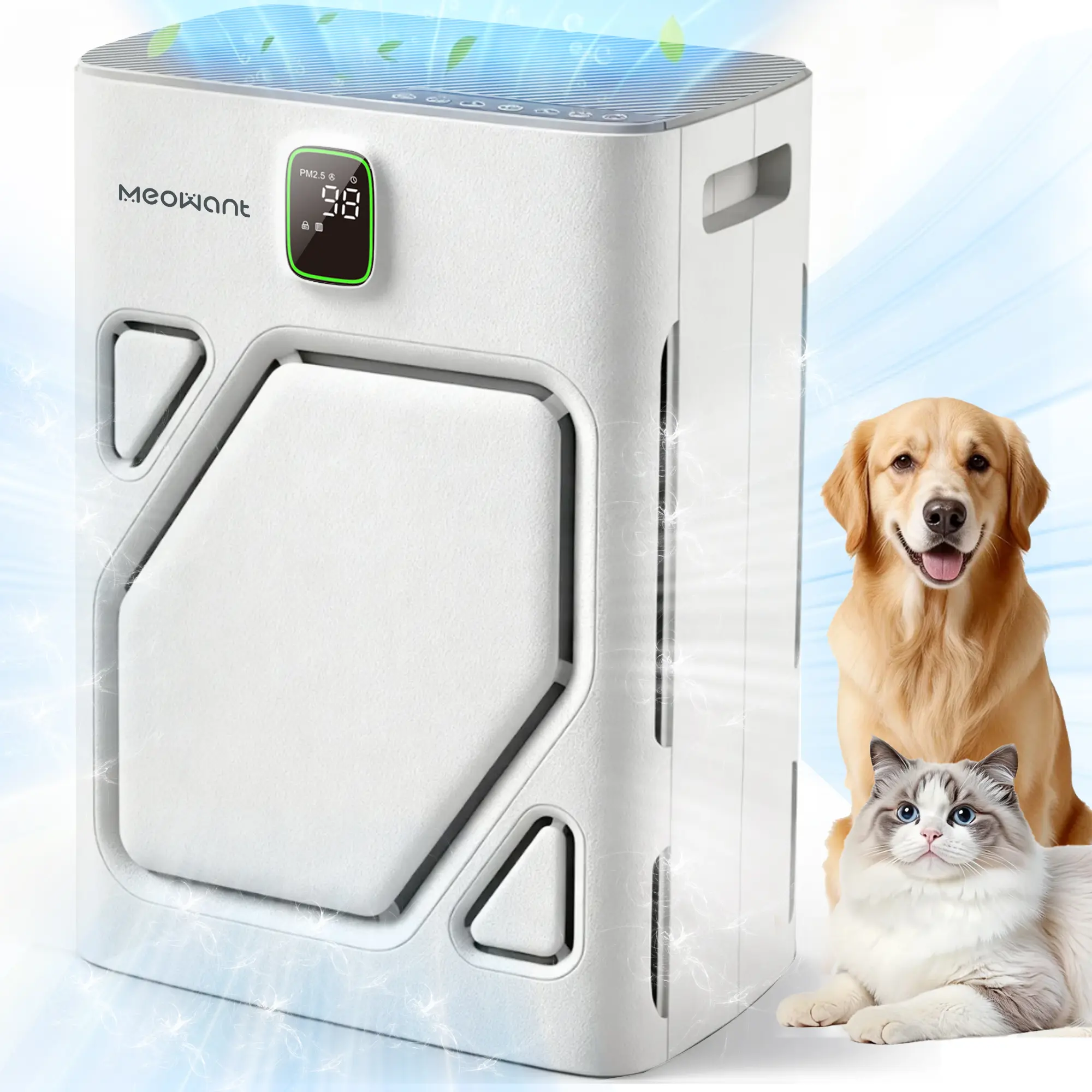 Multi U-Shape Air Inlets, No Fur Stuck, Powerful Pet Floating Hair Pickup: Unlike traditional grid or hole air inlets can easily clogged with pet hair and hard to clean, the Meowant Air Purifier features innovative multi U-shape air inlets for wider inlet and boosted suction power. Paired with a static pre-filter, it easily and securely absorbs floating pet hair and dander—preventing these from re-circulating back into your air. Ideal for individuals who "sensitive" to air quality and families with pets.