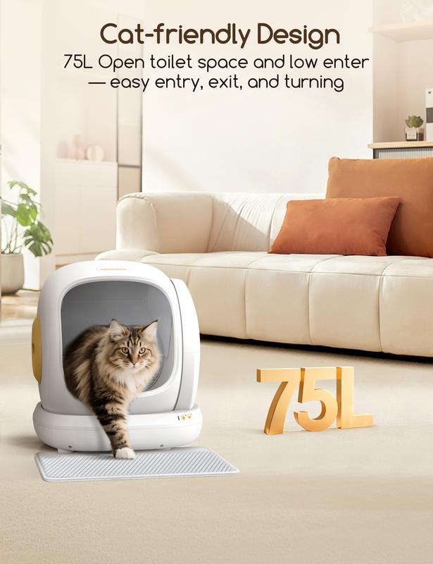 ·Anti-Pinch & Alerts: Integrated anti-pinch structure and 9 sensors ensure 100% safety, preventing cats from getting caught.