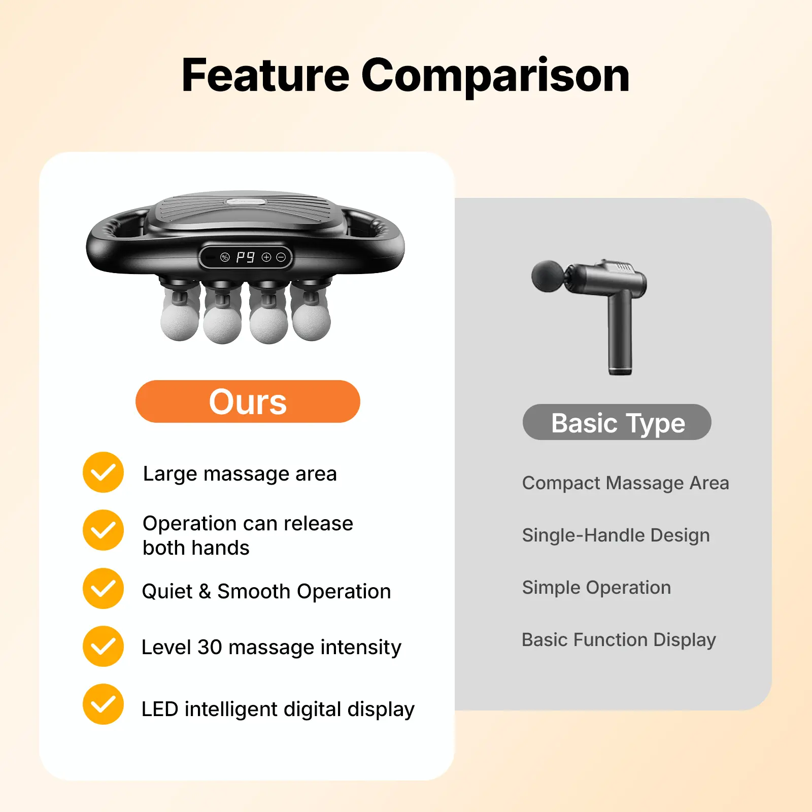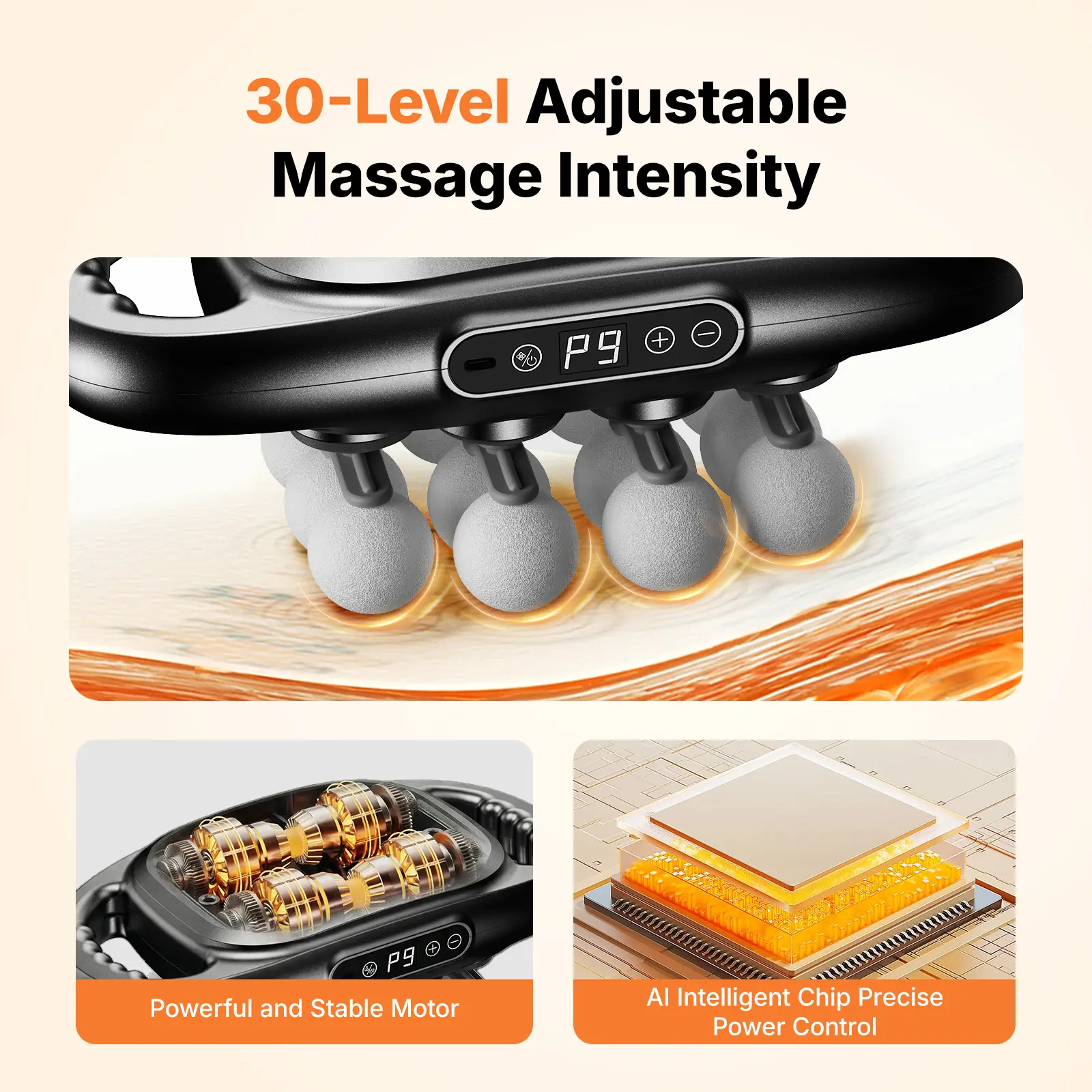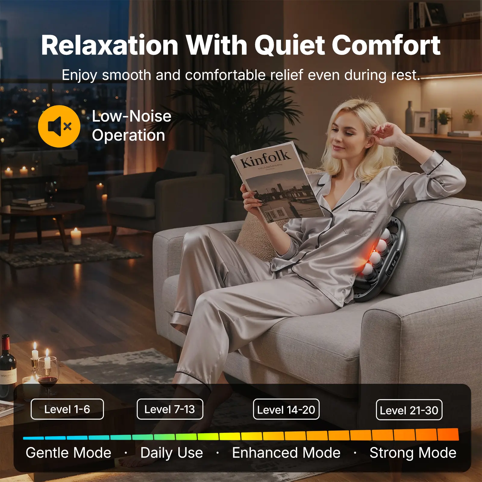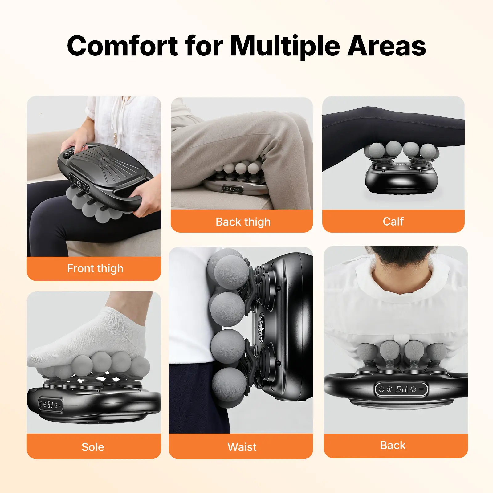 Equipped with 16 multifunctional massage heads, this massager covers larger body areas and adapts to different muscle zones such as the back, shoulders, arms, legs, and waist. The upgraded percussion system delivers stable, deep-reaching impact to support overall muscle comfort—ideal for both active users and everyday relaxation.