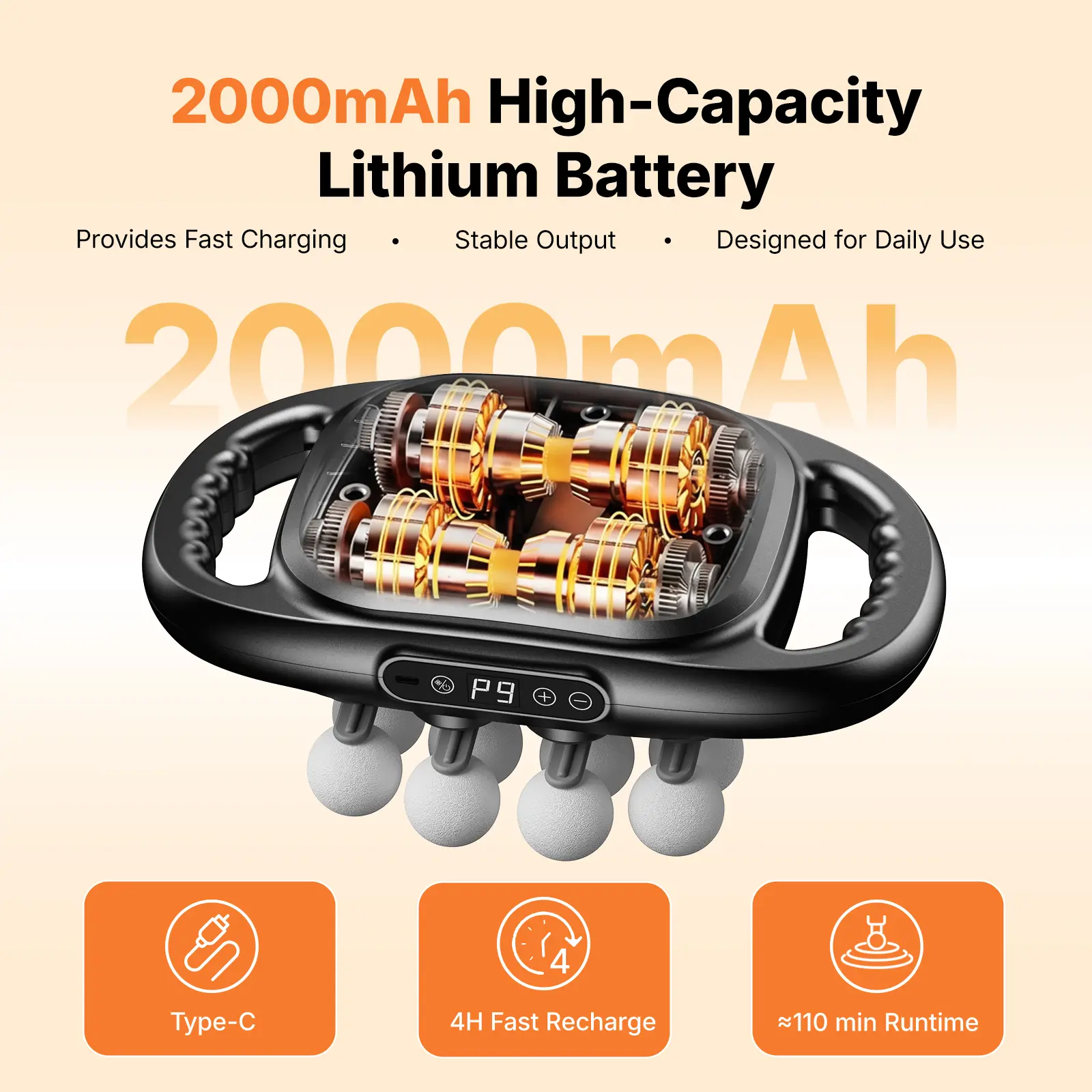 Built with a noise-reduced high-performance motor, the MERACH massager operates quietly for home, office, or gym use.The 2000mAh battery works together with a Type-C fast charging design to provide flexible charging options and stable daily performance.