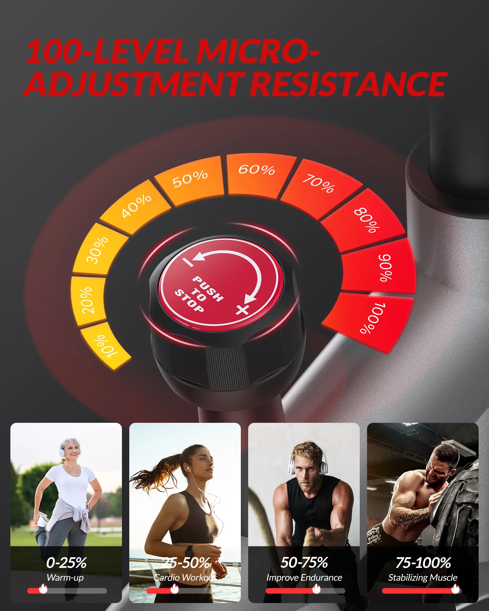 Made of durable thickened stainless steel, the 15 lbs flywheel and unique triangular frame structure ensures stability when riding. The maximum weight capacity can reach 270 pounds, providing you with a stable and safe riding experience. Suitable for all fitness levels.