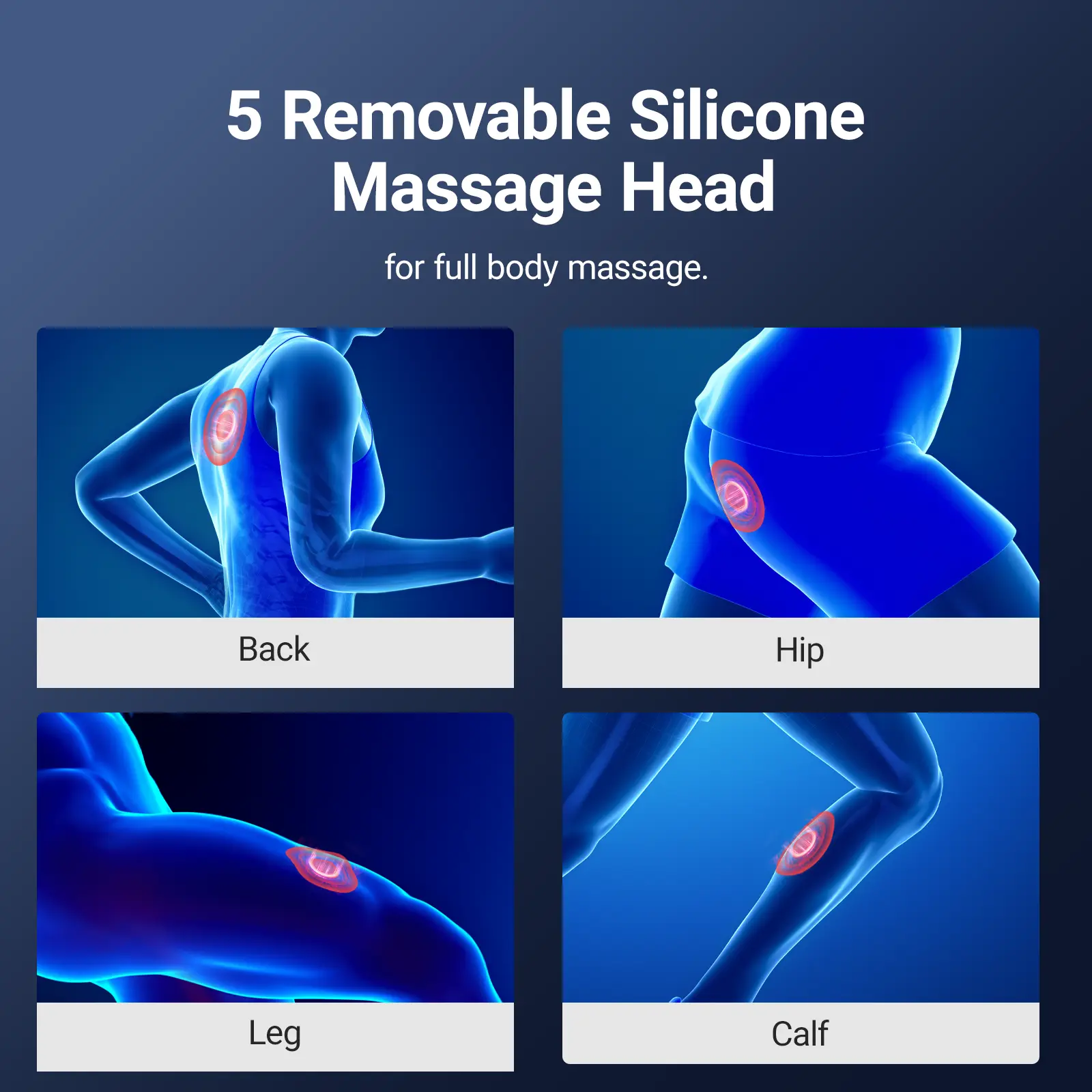 Round Massage Head: Suitable for large muscle groups