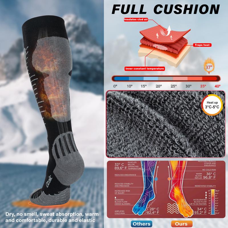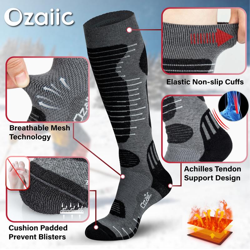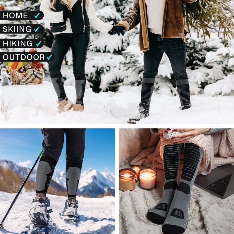 ·【High Performance Socks】: The compression ski socks are moisture wicking to prevent the build up of perspiration. socks advanced breathable mesh weaving technology provide cushioning in the shin, ankle, the foot areas to ensure the ultimate comfortable. Thickened design, effectively reduce foot friction, more soft, warm better. Elastic design warm skiing socks fit better, easy to wear at the same time avoid socks spinning and slide.